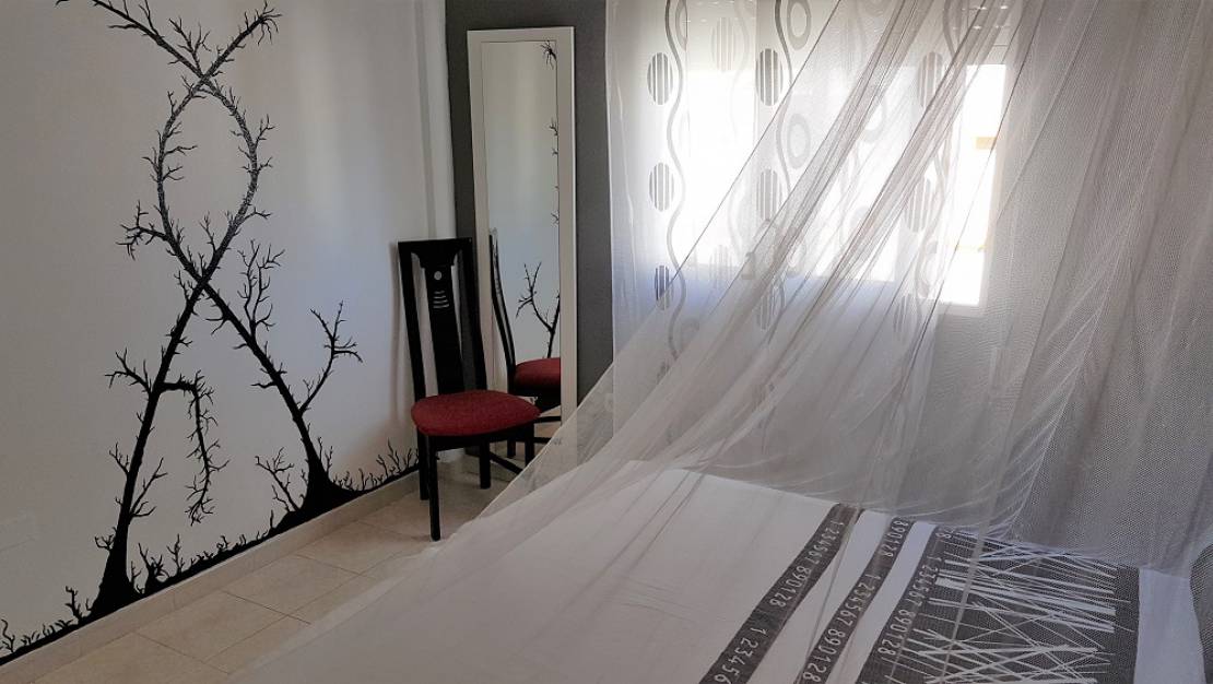 Boliger fordelt på 3 soverom, stue med terrasse, bad med dusj, fullt møblert og utstyrt kjøkken, solarium med havutsikt. Klimaanlegg.