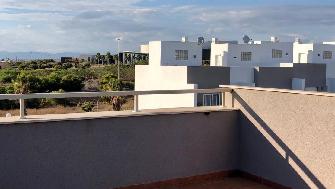 Dette huset til leie ligger i et boligkompleks med felles svømmebasseng i Aguas Nuevas - Sektor 25 i Torrevieja.