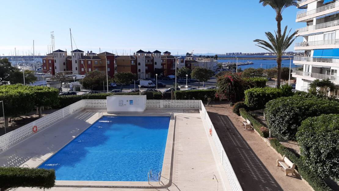 Sør-østvendt leilighet med flott utsikt til marinaen i Torrevieja og Middelhavet.