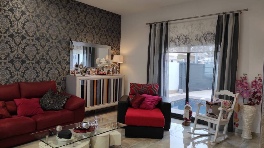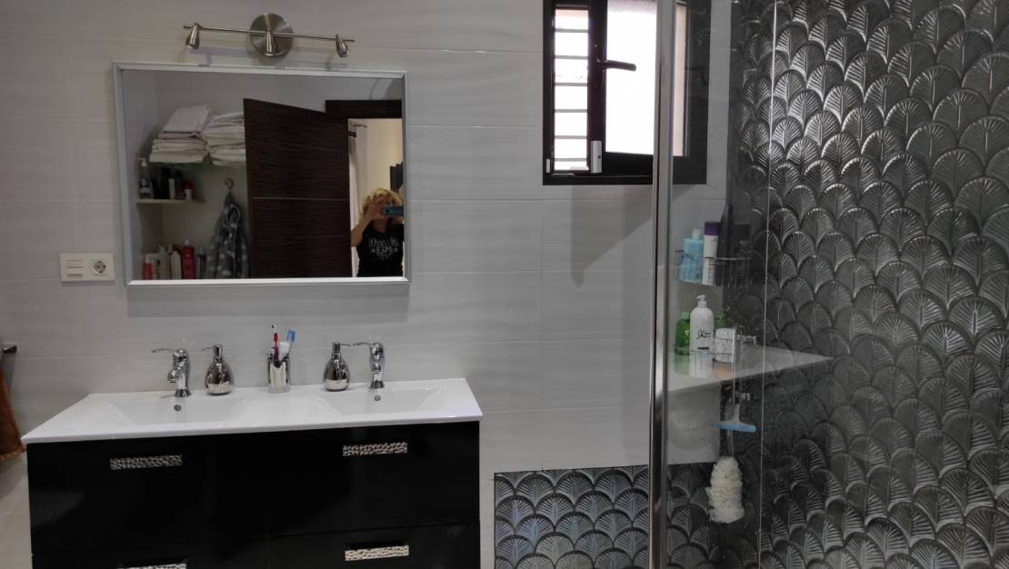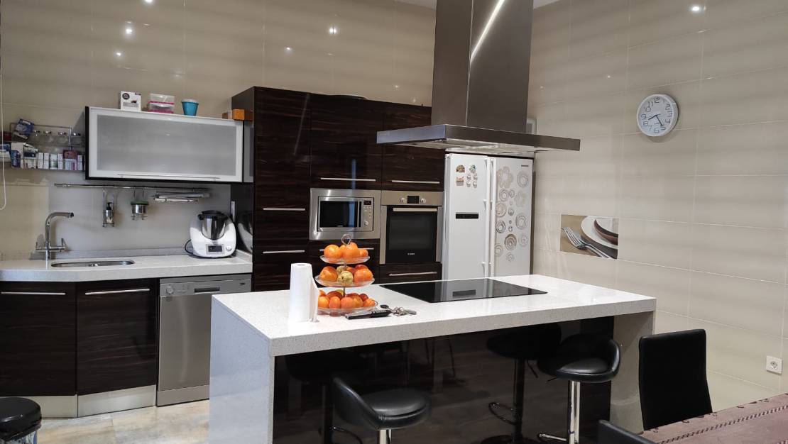 Hus på 143 m2 fordelt på en stor og lys stue, uavhengig kjøkken med spiseplass, 3 soverom, 2 bad og rom som brukes som treningsstudio.