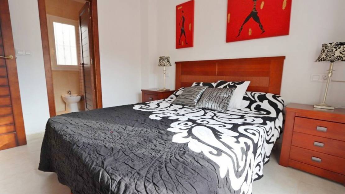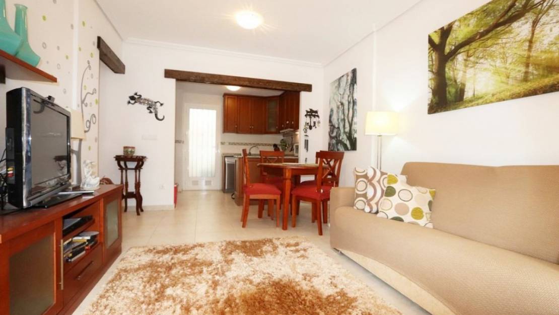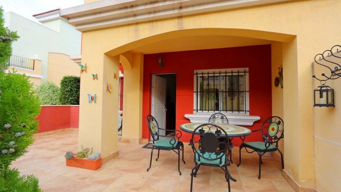 Fint rekkehus (to etasjer) med 3 soverom og 2 bad som ligger i det velkjente boligområdet Altos de la Bahia. Med hjørnehage på ca 50 m2 med inngangsparti til bilen. Huset har et areal på 82 m2 og distribusjonen er som følger: I første etasje er stuen, det amerikanske kjøkkenet med tilgang til vaskerommet, et soverom og et bad. I første etasje er det to soverom og bad, stor terrasse. Alle soverommene har garderober, i hvert rom har aircondition. Huset selges fullt møblert og med apparater. Privat bolig med felles svømmebasseng. Nær alle tjenester og 1,5 km fra stranden. Ideell å bo hele året eller på ferie. Vestorientering.