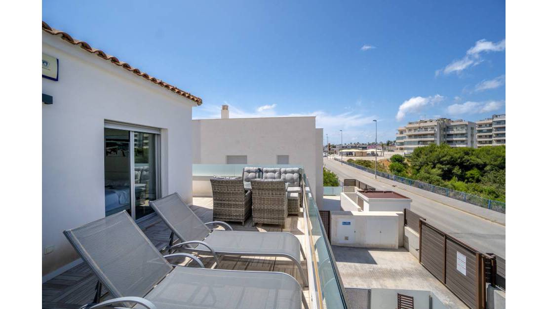 Fantastiske, moderne 3 soverom, 2 bad, 97m2 rekkehus i Villamartin. Eiendommen har et stort, åpent kjøkken/stue, ett soverom og et bad i første etasje. Ytterligere to soverom, et bad ligger i første etasje og tilgang til det private 36m2 solariet. Eiendommen har også en romslig terrasse på parkeringsplassen.