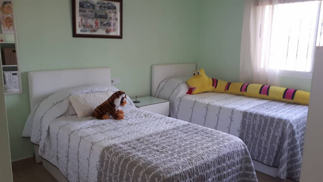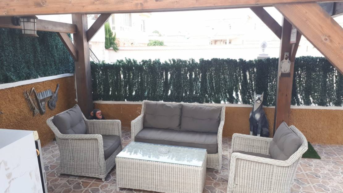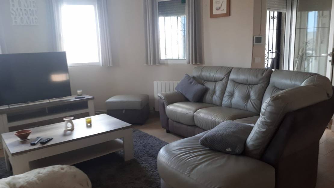 Romslig rekkehus i Orihuela Costa, VILLAMARTIN-området, ligger i en privat urbanisasjon med privat basseng, pedimentbane, grillplass for familiesammenkomster og privat parkering. Det er svært nær barer, kafeer, restauranter, et offentlig svømmebasseng, Universitetssykehuset i Torrevieja og motorveiavkjørselen mot Alicante-Cartagena og 3 km fra strendene i Punta Prima og La Mosca. Huset har 450m2. Av overflate, 6 m2 veranda og en bakgård på 5 m2 pluss en terrasse som kan benyttes dersom man ønsker å bruke andre etasje. Den har nord- og sørorientering på baksiden av huset. Den har 3 soverom, 3 bad, en romslig stue med separat kjøkken, ideell for en familie med barn eller et par. Ekstra: vann, garderober, balkong, grill, lys, strøm, møbler, terrasse, privat basseng, TV, bod, busser, trær, kjøpesentre, medisinske sentre, skoler, kyst, golf, sykehus, parker, supermarkeder, urbanisering , åpen utsikt , barneområder, felles parkering inkludert