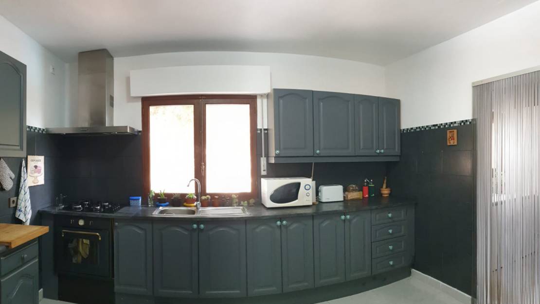 Huset er fordelt i en stor stue-spisestue med et delvis uavhengig kjøkken og 6 soverom, hvorav 3 er i første etasje: stue, 5 soverom, 2 bad (1 med badekar og det andre med dusj).