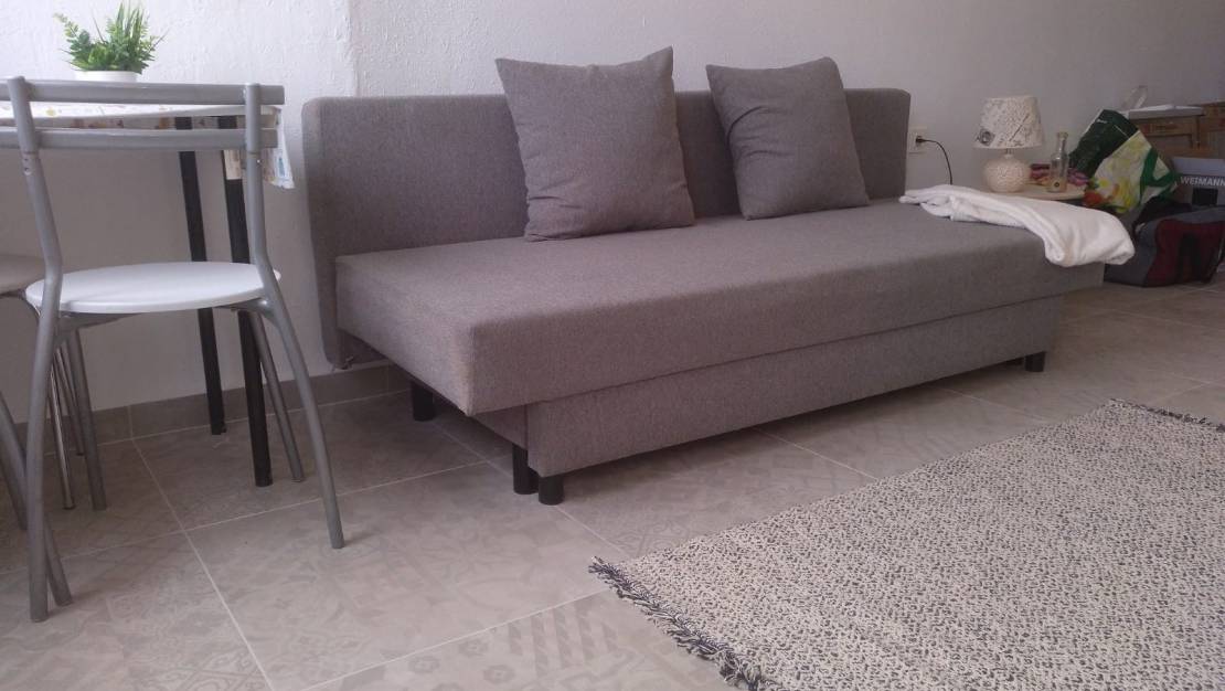 Lys STUDIO på 30m2, med sovesofa. (den har også en enkel sovesofa (grønn)). Det vil være for maksimalt 3 personer.