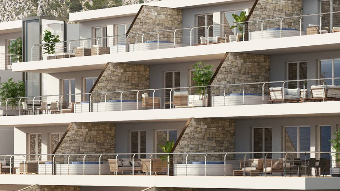 Leiligheten har også en privat terrasse på 77, 40 kvm. Med havutsikt.