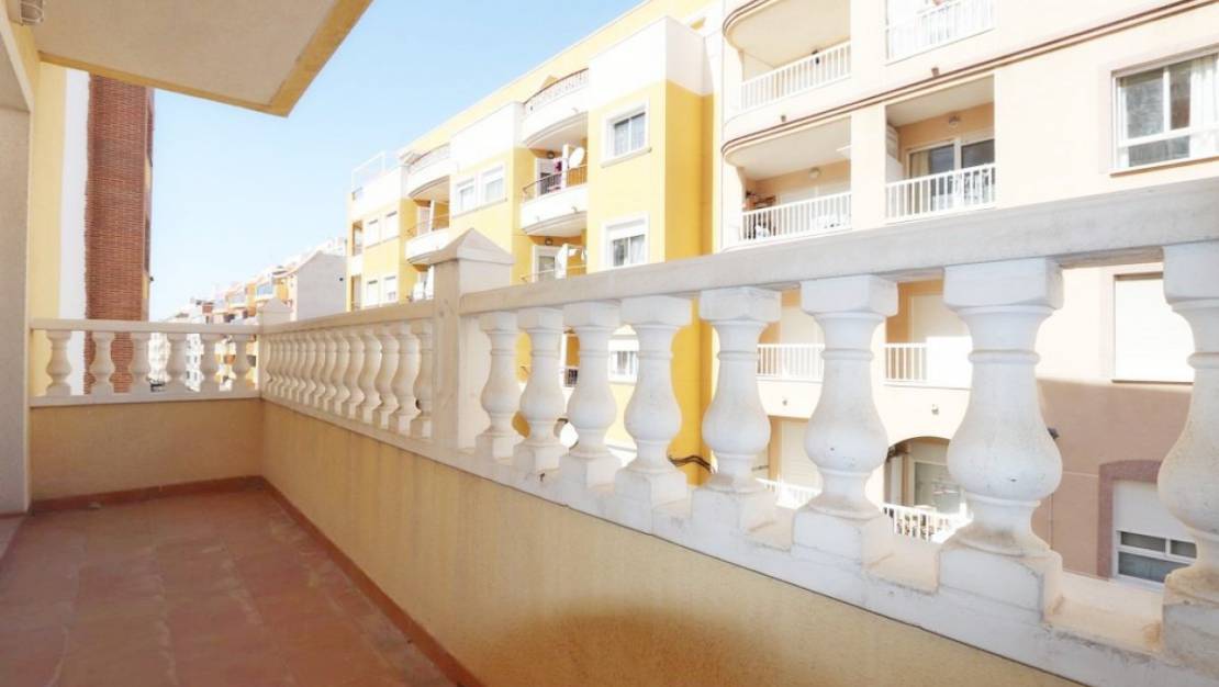 Leilighet i Torrevieja, 500 m fra stranden og sentrum. Den består av 2 soverom og bad, åpent kjøkken, stor stue, terrasse med utsikt over gaten. Omgitt av alle tjenester.