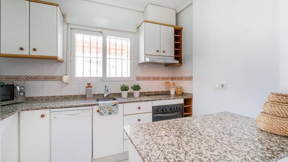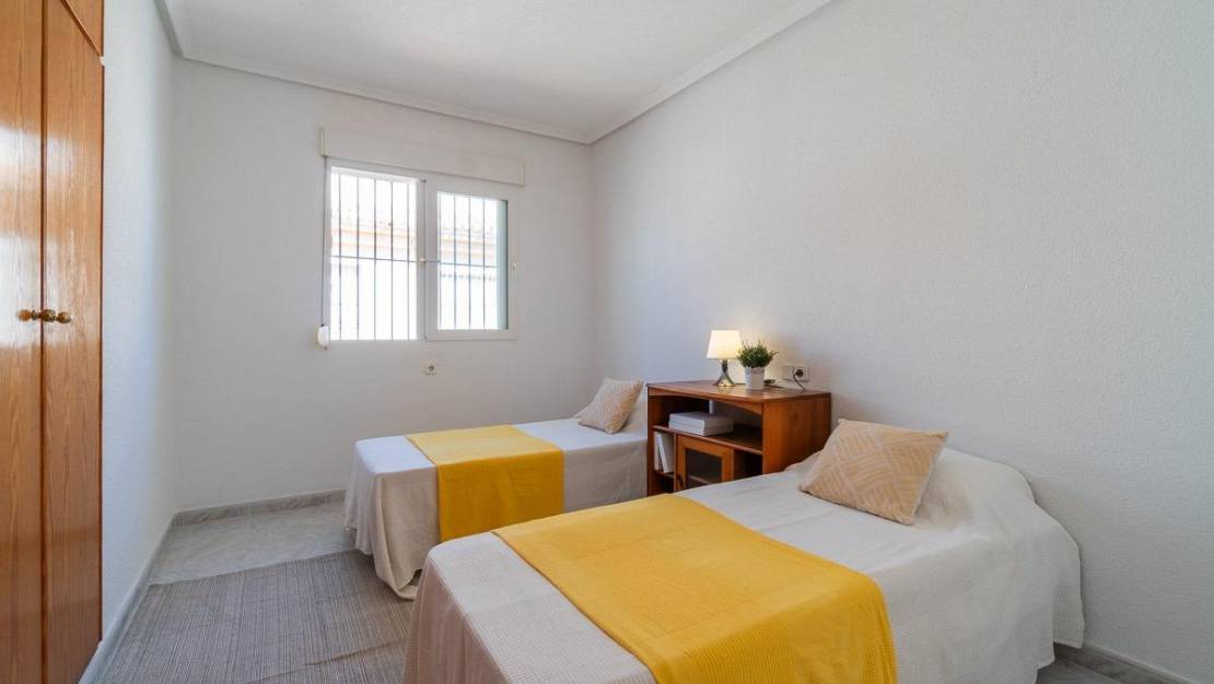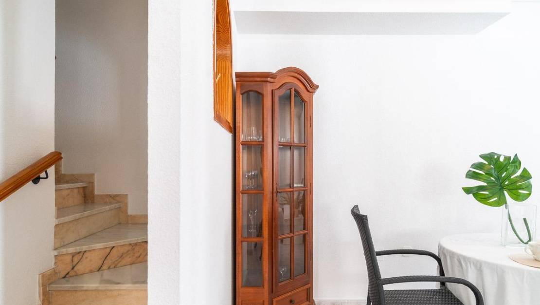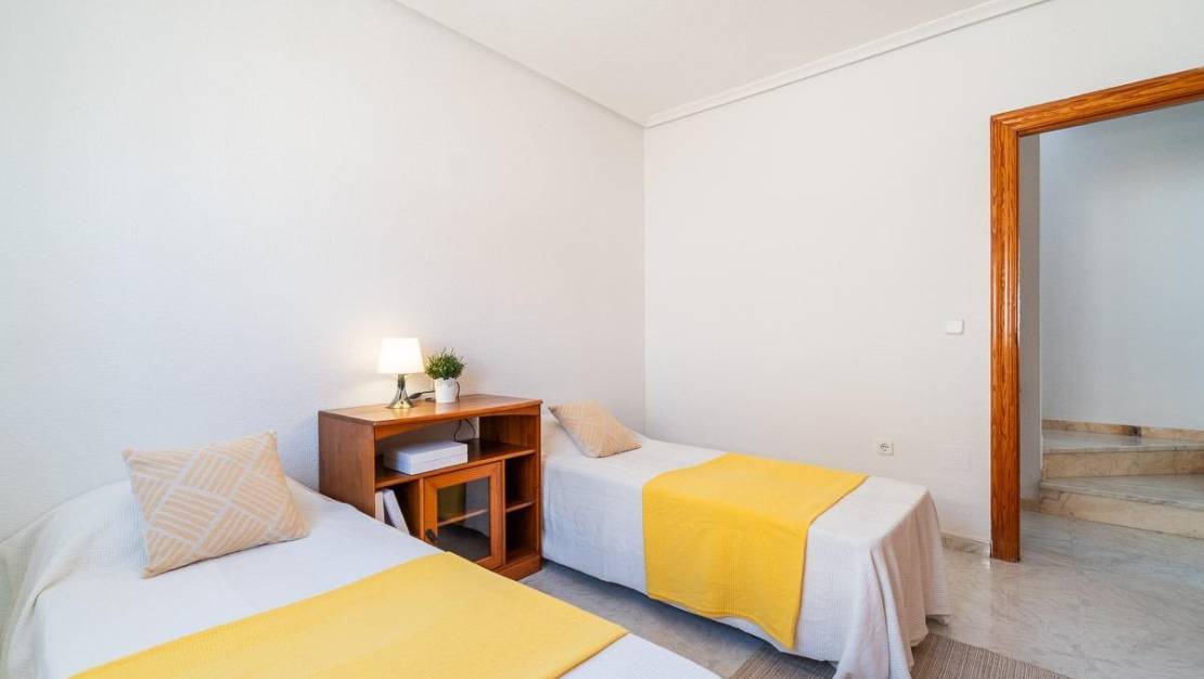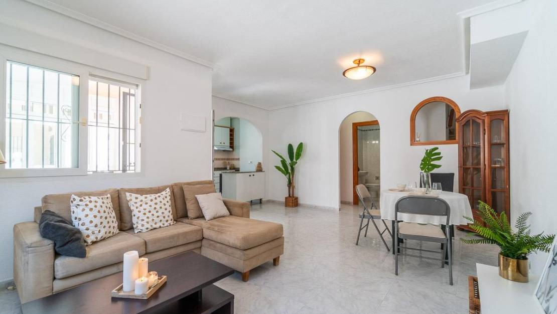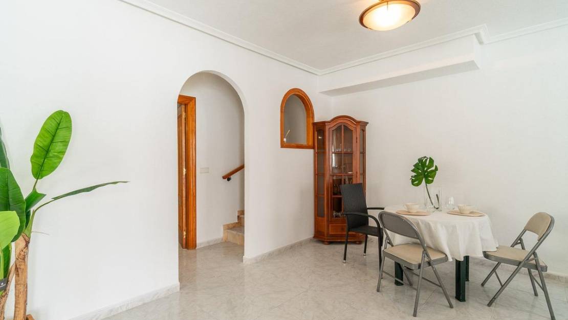 Romslig tomannsbolig med fire hjørner, i et boligkompleks med felles svømmebasseng i sentrum av Playa Flamenca.. . Svært nær sports- og fritidsområder, kjøpesenteret Zenia Boulevard og andre shoppingområder, en kort spasertur fra strendene i Playa Flamenca og de lokale offentlige skolene, lørdagsmarkedet, barer og restauranter, men likevel i et rolig, inngjerdet kompleks med felles svømmebasseng og hager, private gater som kun brukes av beboere, og parkeringsplasser ved foten av boligene for enkel tilgang fra familien, kofferter og andre gjenstander fra kjøretøyet til hjemmet ditt på bare noen få skritt.. . . Boligen har en hjørneflislagt terrasse med planteplasser og nok plass til grill, leseområde, avslapningsområde, eller hvordan du nå ønsker å bruke de over 30 m2 store plassen. Den har også et oppbevaringsrom i aluminium for kofferter, verktøy og mer.. . En innhegning i aluminium og glass er bygget inn i boligens inngangsveranda, noe som gjør den perfekt for bruk som vinterstue på grunn av boligens uslåelige sør-sørvestlige beliggenhet. Dette sikrer solskinn året rundt. Om vinteren, med den nevnte innhegningen, kan du nyte et varmt område som også varmer opp resten av boligen. Om sommeren kan alle glassvinduene åpnes for å slippe inn frisk luft.. . Boligen har tre soverom, ett soverom i første etasje og et bad med dusj i samme etasje. Dette betyr at hvis det er en eldre person med begrenset mobilitet eller noen med funksjonsnedsettelse, trenger de ikke å gå i trapper, noe som gjør det til en veldig praktisk planløsning for alle typer familier.. . Beskrivelsen begynner med å gå inn gjennom den nevnte glassinngjerdede verandaen gjennom sikkerhetsinngangsdøren til den L-formede stue-spisestuen med store vinduer for å maksimere plassen, slik at rikelig med lys og sollys kommer inn i hele første etasje. Stuen har plass til et leseområde, et TV-område og en spiseplass, samt et åpent kjøkken med frokostbar, utstyrt med skap og hvitevarer. I samme første etasje er det et bad med dusj for bruk i hele etasjen, samt et romslig bod under trappeoppgangen for oppbevaring av alle husholdningsartikler som ikke fikk plass i den nevnte boden på utendørsterrassen.. . I første etasje er det to hovedsoverom, begge med innebygde garderober, ett med frokostbalkong, og et komplett bad, pluss et vaskerom med vaskemaskin og en 80-liters elektrisk varmtvannsbereder.. . På taket av eiendommen har vi en 30 kvadratmeter stor takterrasse med uhindret utsikt og plass til rekreasjon, lesing eller bare å nyte solen og den uhindrede utsikten.. Boligen har nettopp blitt malt og dekorert, og når den er møblert, kan du begynne å nyte den.. . Det er verdt et besøk for å se eiendommens mange muligheter, takket være den solrike beliggenheten, den svært rolige beliggenheten, enkle parkeringsmuligheter og det faktum at den er i perfekt stand og er klar til innflytting umiddelbart.