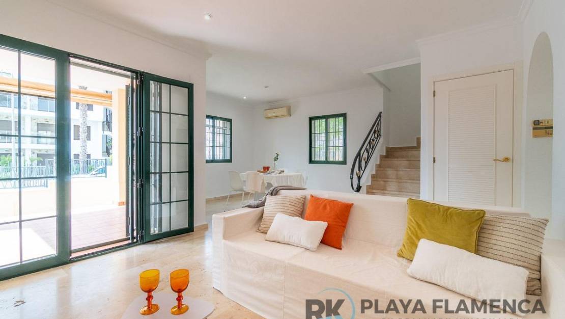 I et av de roligste og mest eksklusive områdene i VillaMartin-utbyggingen, svært nær tre golfbaner og med egen hage og basseng, ligger denne vakre villaen med utsikt over grøntområder, perfekt for en stor familie.. . Eiendommen ligger i nærheten av tre golfbaner: Las Ramblas, Campoamor og Villamartín. Den har også enkel tilgang til avkjørselen fra motorveien AP-7, med direkte forbindelser til flyplassene i Alicante (ca. 40 km) og Murcia (ca. 40 km).. . Den har et felles svømmebasseng med hager, hvor du kan sole deg og svømme med resten av naboene. Den har også egen hage og flislagte terrasser, og et basseng som trenger renovering.. . Villaens størrelse er ideell for de som leter etter plass, eller for å underholde gjester og venner; med sine 3 soverom, 2 bad og en god tomt og hageområde.. . Den 410 kvadratmeter store tomten er perfekt for å ha plass og en følelse av uavhengighet, med sin asfalterte forhage med bilinnkjøring og en asfaltert bakhage med uhindret utsikt. Men siden den er brolagt og ikke har mange trær og planter, krever den ikke mye vedlikehold eller arbeid. Villaen vender mot sør på hovedfasaden, terrassene og takterrassen, så den har sol praktisk talt hele dagen. Denne villaen er utvilsomt drømmen til mange.. Og husets planløsning: fra hagen er den første terrassen, som nevnt, tilgjengelig, og vender mot sør-sørvest. Den har sol hele dagen, men samtidig, siden den er åpen mot hagen og gaten, slipper den inn en frisk bris. Denne romslige terrassen, med plass til sofaer og bord, fører til husets hovedinngang med en sikkerhetsdør, som åpner ut mot den romslige og lyse stuen og spisestuen med peis. Den har også et separat kjøkken med egen dør og vindu, slik at du kan lage mat uten å måtte bekymre deg for lukt og fett som kommer inn i resten av huset.. I første etasje er det også et romslig soverom med innebygd garderobe og et bad med dusjkabinett. Dette betyr at hvis familien har en eldre person eller noen med mobilitetsproblemer, kan de bo alene i denne etasjen uten å måtte gå opp og ned trapper.. . Første etasje, tilgjengelig via den innvendige trappen med to etasjer og enkel adkomst, fører til de to andre soverommene med innebygde garderober og direkte tilgang til det store takterrassen og balkongen. Denne etasjen har også et andre bad, denne gangen med badekar for avslappende bad og innebygde møbler.. . Dette betyr at hver etasje har sitt eget bad, soverom og plass til å nyte både utendørs og innendørs, med terrasser, noe som gjør det til det perfekte hjemmet for en stor familie.. . . Boligen er verdt et besøk for sin romslighet, sitt lys, sin nærhet til alle fasiliteter og golfbanen, og sin ro.