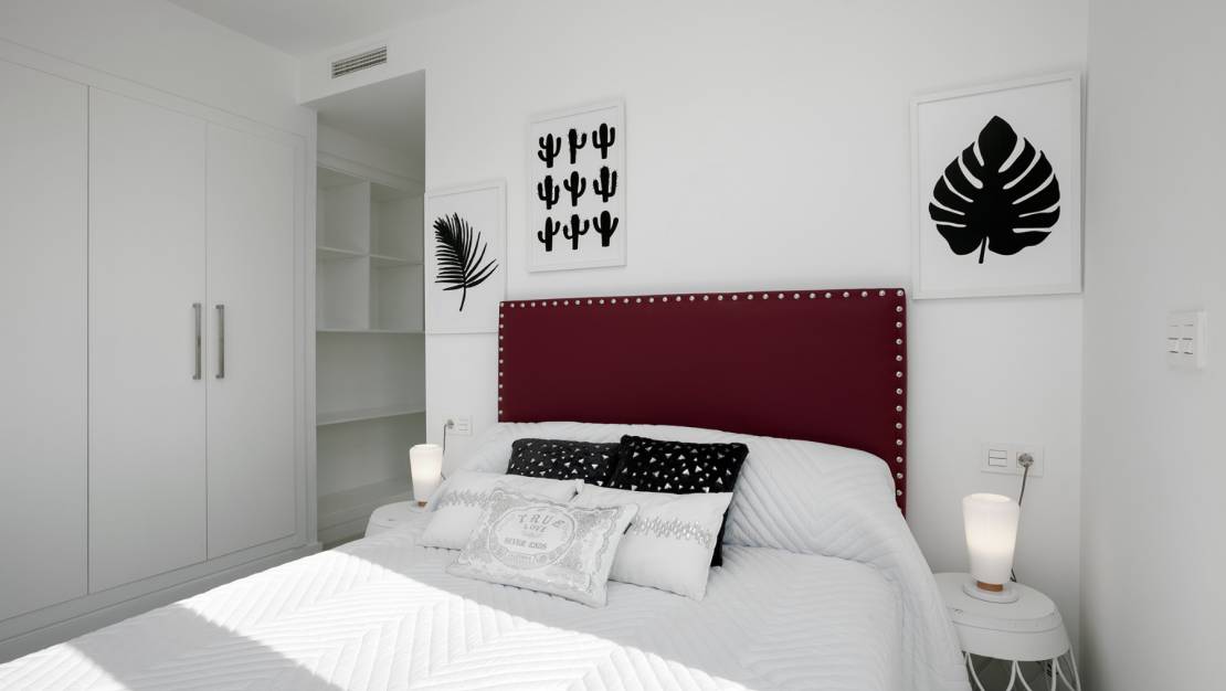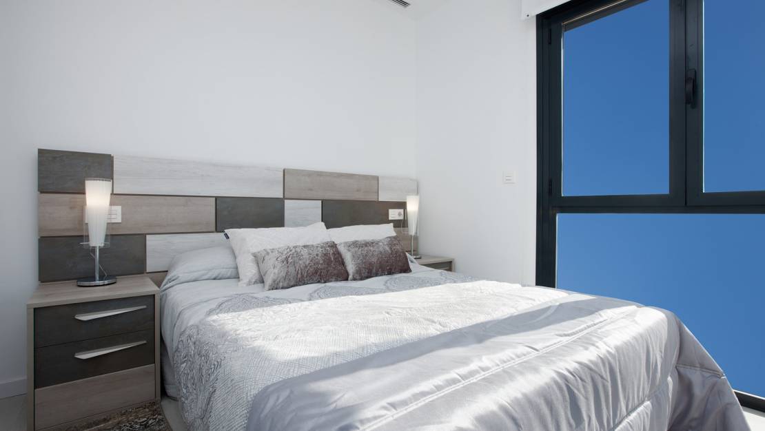 Eiendommene består av tre doble soverom (alle med garderober)-ett med direkte tilgang til en romslig balkong, tre bad (ett med eget bad), moderne fullt utstyrt kjøkken og åpen stue/spisestue som fører til det private bassenget og solarium.