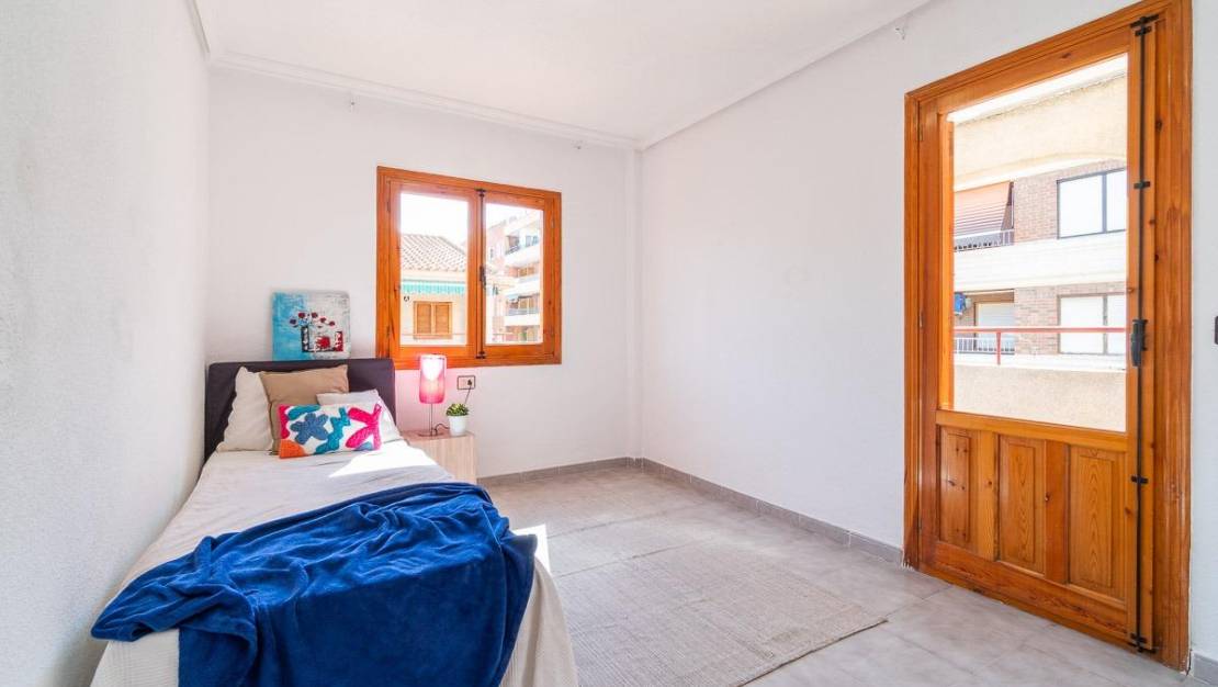 Oppdag denne sjarmerende bungalowen i det ettertraktede området El Acequión - Los Náufragos, bare 150 meter fra sjøen. Med et bruksareal på 97 m² og østvendt orientering er denne eiendommen innflyttingsklar – ideell både for familier og som fritidsbolig ved kysten. Når du går inn, møtes du av en romslig balkong som fører rett inn i stuen, et lyst og koselig rom som er perfekt for familietid. Fra stuen er det adgang til et separat, fullt utstyrt kjøkken med eget vaskerom for ekstra komfort. På samme etasje finner du også et romslig og praktisk soverom samt et komplett bad som betjener oppholdsrommet.. . I andre etasje finner du soveområdet med et komplett bad og to doble soverom, begge med direkte utgang til en annen balkong som gir naturlig lys og en privat uteplass. Beliggenheten er utmerket: boligen er omgitt av grønne områder med trær som skaper en hyggelig og naturlig atmosfære, med enkel tilgang til busser, skoler, kjøpesentre og nærliggende sykehus. For barna finnes det trygge lekeplasser der de kan leke fritt.. . En unik mulighet til å skaffe seg et koselig og godt plassert hjem i en av de mest attraktive delene av Torrevieja, innflyttingsklart og klart til å nytes fra første dag.