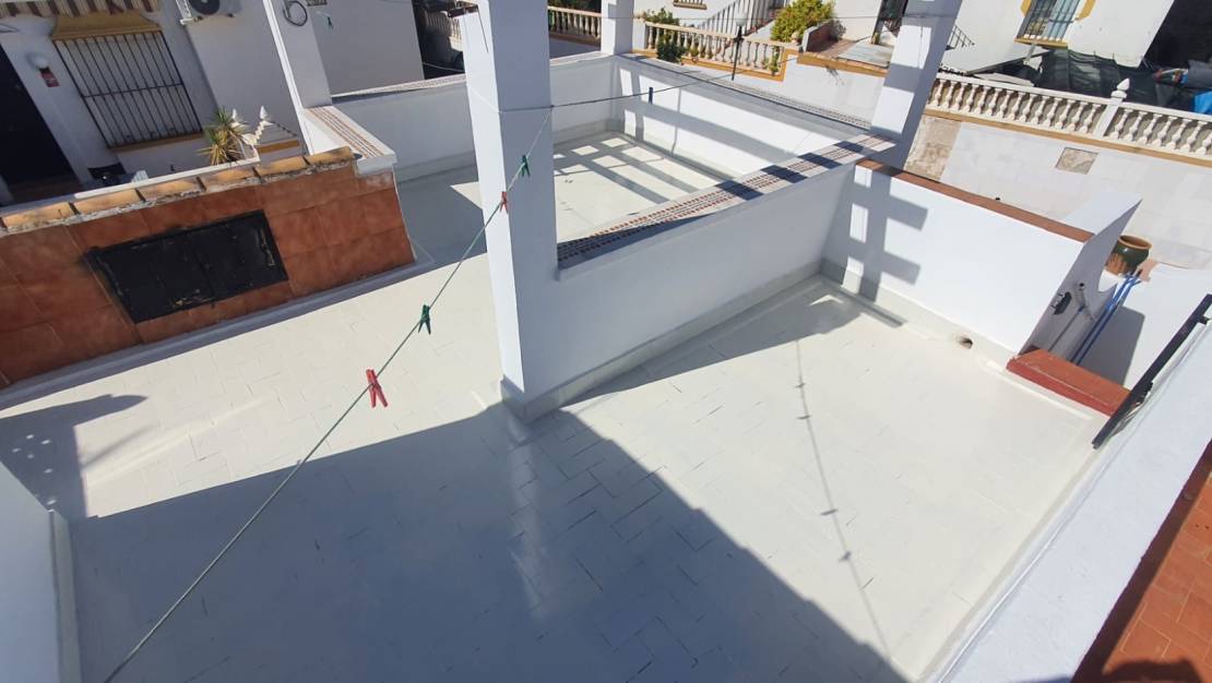 Dette hjørnehuset har to romslige soverom, et bad, en lys stue og et fullt utstyrt kjøkken. Huset har også en 44 m² terrasse og en 36 m² privat takterrasse. Huset selges fullt møblert og innflyttingsklart.