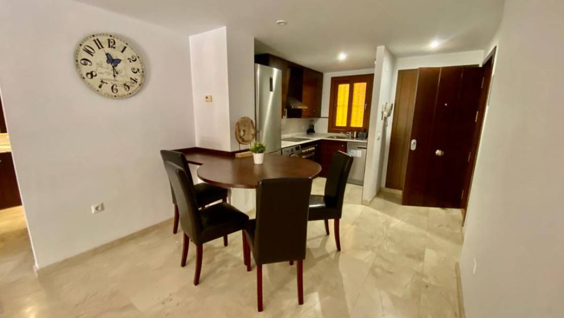 Denne 77 m2 bygde leiligheten er fordelt i en stue med utgang til terrasse, et fullt møblert kjøkken med hvitevarer, 2 soverom og 1 bad.