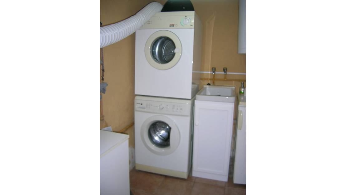 Living room with a high-end cassette-type wood-burning fireplace, independent kitchen with high-end appliances, 2 bathrooms and 1 toilet. 3 bedrooms, 3 built-in wardrobes. Porch with awning and terrace, paved plot, patio with a laundry shed and separate storage room with sink, thermos, washing machine and dryer. It is rented without furniture and decoration.