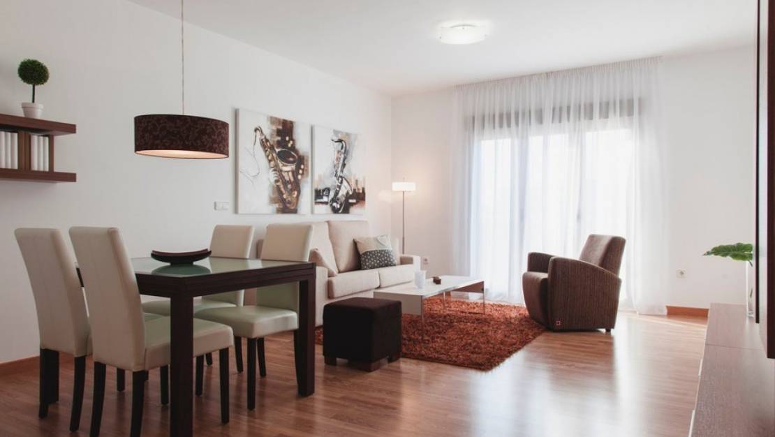 Very spacious first floor apartment in the central area of San Pedro de Pinatar. Consists of 4 bedrooms and 2 bathrooms, terrace, fully equipped kitchen, laundry. A / C through installed duct. The price includes parking space in the underground garage and storage. Located in 10 min walking to the beach and downtown. CC Dos Mares in 5 min in car.