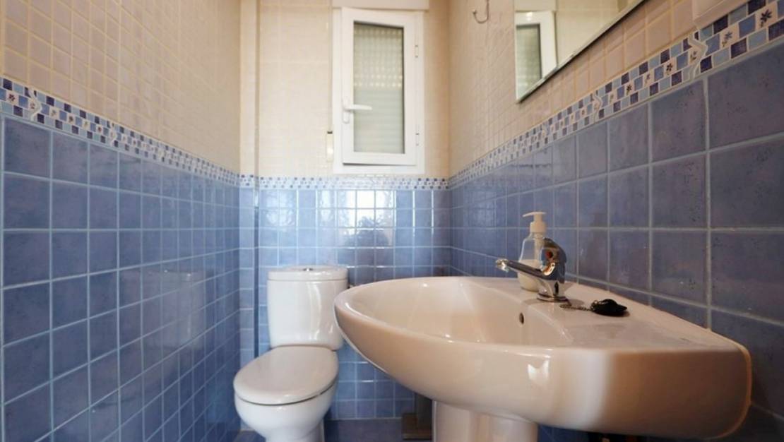 Nice south facing duplex in Lomas de Cabo Roig. It has very bright living room, kitchen and 1 toilet on the ground floor, 2 bedrooms (master bedroom with a terrace of 4m2) and 1 bathroom on the first floor. Garden of about 24m2, terrace 6m2, patio with artificial grass 10m2 and solarium. Direct exit from the patio to the common areas with the pool and parking. It sold furnished with appliances. In 800m are shopping center with supermarket, bars, restaurants. 5 minutes by car CC Zenia Boulevard and Campoamor golf course.
