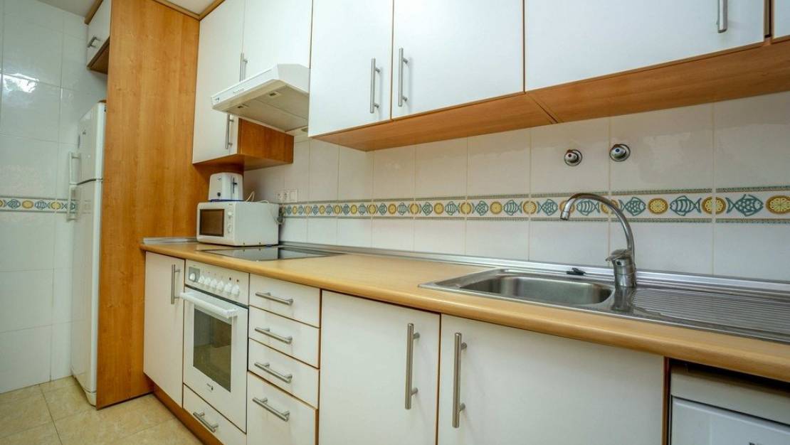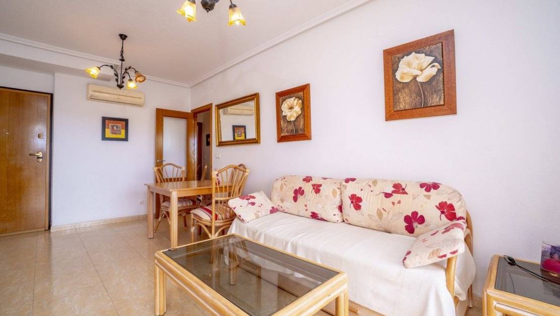 Apartment 1st floor with magnificent sea views, located in the prestigious urbanization of Terrazas de Aguamarina, with an excellent location 200 meters from the sea and very close to the main services of the municipality, supermarkets, restaurants, pharmacy, center commercial. It has 2 bedrooms and 1 bathroom. Residential with community pool and green areas. The house in very good condition, very bright, south facing. Parking space included in the price.