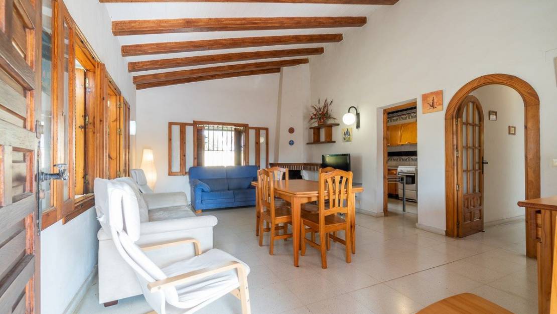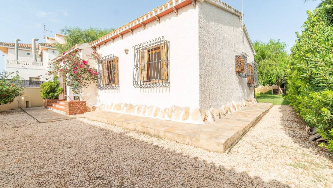Beautiful independent Villa in Punta Prima, very close to all basic services, supermarkets, cafes, restaurants, banks, you can walk to all parts, a few meters from the bus stop and Alicante airport. The villa is of old Mediterranean construction, but it is very well cared for by the owners, it has high ceilings with wooden imitation beams, the house is surrounded by natural grass about 550 m2 of land, two covered porches, a warehouse to store machinery and a barbecue. It has site for the construction of a private pool, although it is about 300 meters from the sea. It has 3 double bedrooms with built-in wardrobes, a bathroom and a toilet, a spacious living room with high ceilings, an independent kitchen with an interior patio, and two exits with a covered porch. If you want a spacious villa in one of the best areas of Orihuela Costa and near the sea, this is your opportunity, make an appointment and come see it. Sum (ibi) 300 per year Community € 123 per year