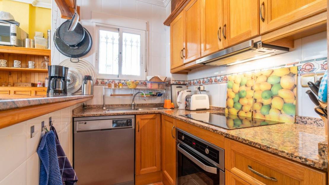 This townhouse with 2 bedrooms and 1 bathroom offers the ideal opportunity for your vacation; proximity to the main places of interest; and an irresistible price. On the first floor there are 2 bedrooms and 2 bathroom and the solarium is accessed by an internal staircase. The central location of this quad allows access to the main places of interest on foot: such as the CC Boulevard (3 min); Mercadona (7 min); local bars and restaurants; ATMs, and of course… the coves of Playa Flamenca (La Mosca, just 1,755 meters away on foot). Nearby, the well-known Playa Flamenca market (Orihuela Costa) is held on Saturday mornings to mingle with the diversity of nationalities (Swedish, English, German, Spanish, Belgian, among others) that enriches our coast. The advantage of this house is that it enjoys a private street (community) with easy parking. The southeast orientation of this house allows you to enjoy the sun throughout the day, and provides warmth to the main areas of the house such as the living room, the glazed terrace and the main room. The qualities of the interior of the house are normal and offer a cozy and pleasant atmosphere. The living-dining room is spacious and is protected from the gaze of those who pass through the community corridors thanks to the difference in height; It also has a fireplace that gives a pleasant atmosphere. In the garden there is a very cozy glazed terrace ideal for relaxing in the afternoon or having coffee in the morning: and your family and friends will be delighted if you invite them to have a few drinks or a barbecue in a charming atmosphere with music under the sun of the sunset in the solarium. The community is especially friendly, with owners of many different nationalities (Swedish, Irish, English, German, Spanish, etc.) typical of our beach area. The community areas are cared for throughout the year, as well as the large community pool, with a children's area in a closed residential area with owners who live all year round. Extras: fitted wardrobes, medical centers, pantry, corner, gallery, garden, telephone line, bright, electricity, furniture, community pool, solarium, TV, terrace, all exterior, trees, buses, shopping centers, schools, coast, golf, hospitals, urbanization, fencing, children's areas. INGLES Ideal property for those looking to enjoy the tranquility of the Orihuela costa, where prestige, safety and good weather prevail throughout the year. Orihuela Costa is an area of special interest for those looking to enjoy some of the finest beaches on the Costa Blanca and play golf since we are surrounded by six stunning golf courses (C.Golf Villamartin, C.Golf Las Ramblas, C.Golf Campoamor, C. Golf de Entre Naranjos, C. Golf La Finca Golf and C. Golf Lo Romero). In addition, if you are a lover of shopping and new trends, you can enjoy a pleasant day strolling through our famous shopping center La Zenia Boulevard.