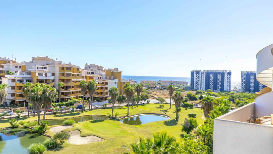 It´s located close to all the services such as shopping malls, restaurants and shops. Punta Prima is a development by the sea, where you can enjoy water sports, entertainment and beaches. It is close to all amenities like Zenia Boulevard shopping centre and sports centers. Walking distance to Cala Piteras, Playa of Punta Prima and Playa Flamenca and other blue flag beaches of Orihuela Costa and Torrevieja. Few minutes from the golf courses Las Colinas, Campoamor, Las Ramblas and Villamartin. Good communication with the Mediterranean motorway AP-7 and N-332.rnrnPanorama Park is an exclusive complex located in Punta Prima, Torrevieja. The residencial has spacious green areas with private pitch and putt golf. Also has 2 spacious community pool, 24h private security.rnrnPenthouse with beautiful community and sea views. The property consists of large dining-living room, american style kitchen, 2 bedrooms and 1 bedroom. Also benefits with terrace and 23m2 private solarium. rnUnderground parking included.