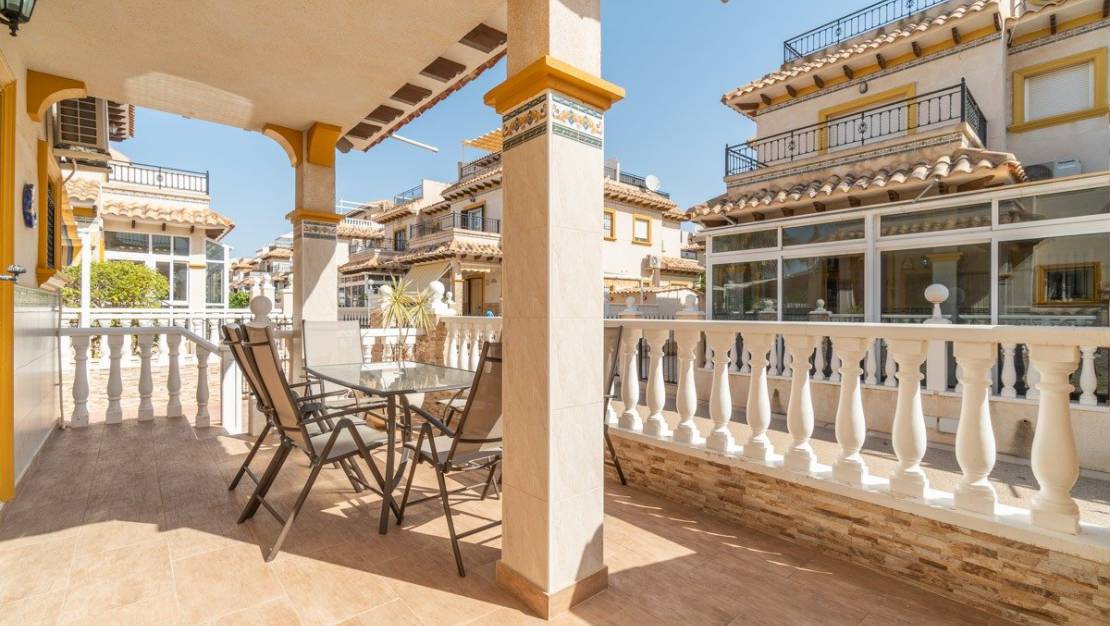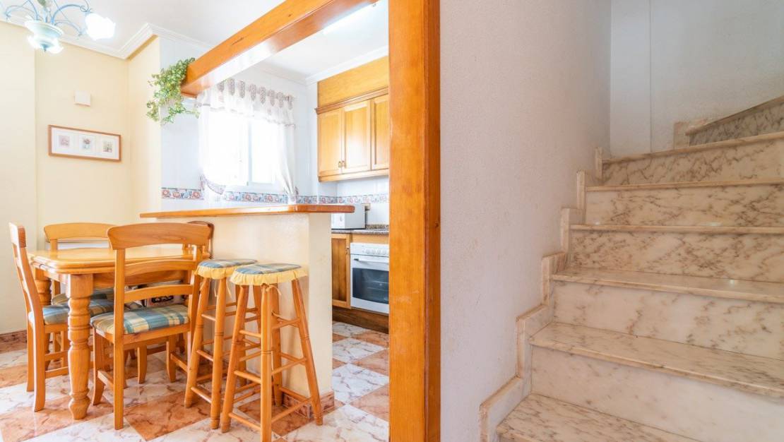 Beautiful semi-detached house in Playa Flamenca (Orihuela Costa) 75 m2 house is distributed on the ground floor living-dining room, open kitchen, toilet and double bedroom, on the first floor 2 double bedrooms with built-in wardrobe, and a large bathroom, the next floor has a solarium and beautiful views. It has a garden of about 45 m2 with parking entrance and fully paved and with awnings. The central location in Playa Flamenca allows us to be close to all the main places of interest in our coastal area: the beach, the beach bars, dance venues, emblematic restaurants (where seafood rice dishes, paella, seafood dishes abound, among other gastronomic specialties) ). The cultural and leisure offer is more than abundant with multiple possibilities: water sports such as sailing, jet-sky, diving, surfing, kai-surfing; Golf is also a popular leisure option among fans of this sport: about 10-15 km away there is access to the main golf clubs in the area (Las Ramblas, Campoamor, Villamartin, and Las Colinas ─”a world apart”─); shopping (CC. Boulvard ─one of the largest shopping centers in Europe with more than 150 stores for sports, DIY, fashion, jewelry, footwear, beauty, opticians as well as various events throughout the year─). All this without forgetting easy access to Torrevieja, Alicante, Murcia, Cartagena from the AP-7, N332, among others. The San Javier and Alicante Airports are less than 1 hour away by car (ca. 40Km). Being paired thanks to the solarium and the garden is very bright and ideal to enjoy the sun in spring, summer or autumn. Your family and friends will be delighted if you invite them to have a few drinks or a barbecue in a charming environment under a pergola that you could put in the solarium, or turn this space into a chill out zone. In addition to the parking space, there are also many parking possibilities on the private street, since the urbanization is completely closed. Thanks to the fact that it faces the outside of the residential area, you can enjoy the tranquility of the neighborhood (away from the noise of the tourist areas). The community is especially friendly, with owners of many different nationalities (Swedish, Irish, English, German, Spanish, etc.) typical of our beach area. The community areas are cared for throughout the year, as well as the large community pool, which includes a children's area. Next to the pool there is an area to sunbathe or rest after coming from the beach. Ibi (sum) €185 Community €240 Annual