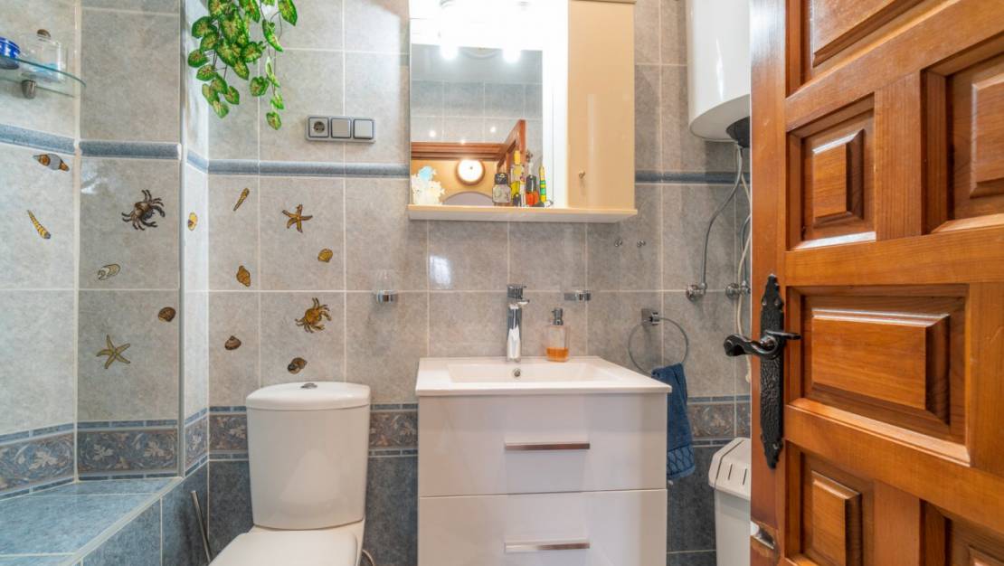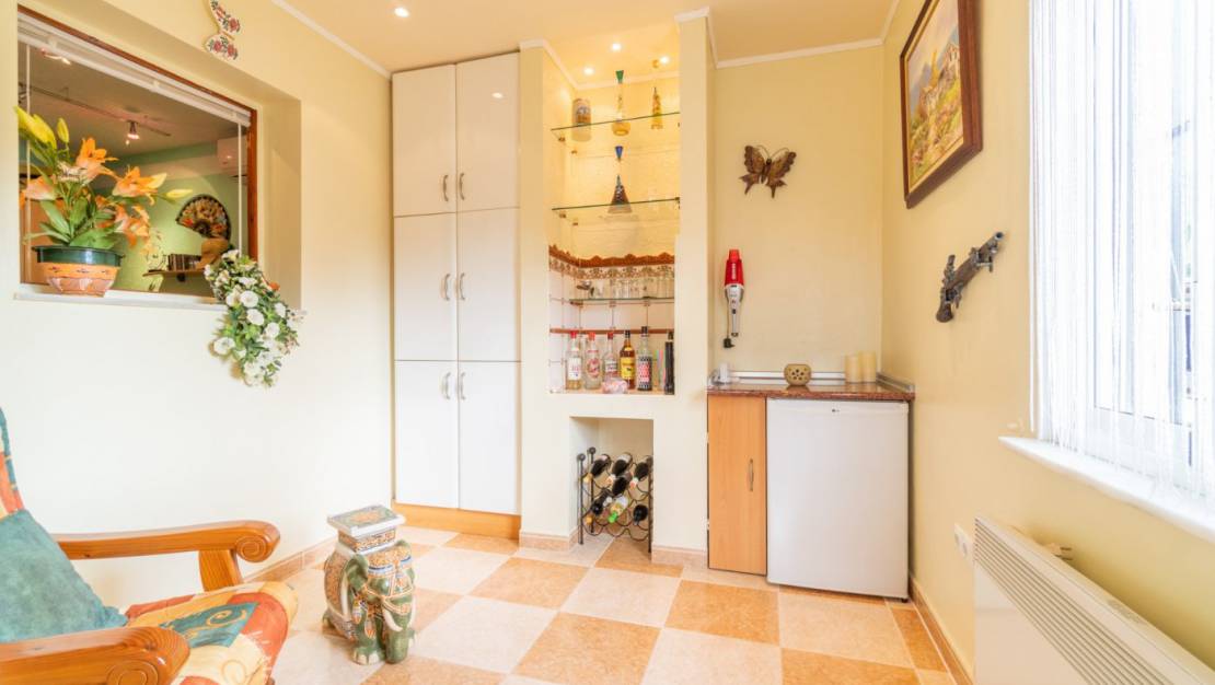 This townhouse with 1 bedroom and 1 bathroom offers the ideal opportunity for your vacation; proximity to the main places of interest; and an irresistible price. On the ground floor there is 1 bedroom and 1 bathroom and the solarium is accessed by an internal staircase. The central location of this quad allows access to the main places of interest: such as CC Zenia Boulevard (5 min); Lidl supermarket (5 min); local bars and restaurants; ATMs, and of course... the coves of Playa Flamenca (La Mosca, just 1,500 meters away on foot). Nearby, the well-known Playa Flamenca market (Orihuela Costa) is held on Saturday mornings to mingle with the diversity of nationalities (Swedish, English, German, Spanish, Belgian, among others) that enriches our coast. The advantage of this house is that it enjoys a private street (community) with easy parking. The east orientation of this house allows you to enjoy the sun throughout the day, and gives heat to the main areas of the house such as the living room, the solarium terrace and the kitchen. The qualities of the interior of the house are normal and offer a cozy and pleasant atmosphere. The living-dining room is spacious and is protected from the gaze of those who pass through the community corridors thanks to the difference in height. In the garden there is a very cozy area ideal for relaxing in the afternoon or morning coffee: and your family and friends will be delighted if you invite them to have a few drinks or a barbecue in a charming atmosphere with music under the sunset sun. in the solarium, with a part sheltered from the wind. The community is especially friendly, with owners of many different nationalities (Swedish, Irish, English, German, Spanish, etc.) typical of our beach area. The green areas of the community are cared for throughout the year in this gated community that has owners who live there all year round. Extras: fitted wardrobes, barbecue, medical centers, pantry, corner, gallery, garden, telephone line, bright, electricity, solarium, TV, terrace, all exterior, trees, buses, shopping centers, schools, coast, golf, hospitals , urbanization, fenced, children's areas.
