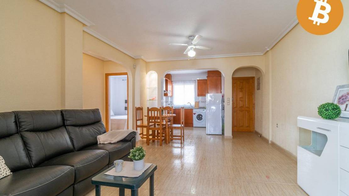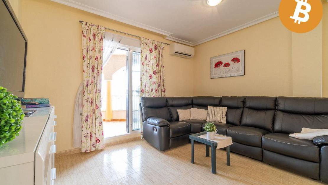 This beautiful appartment located in the Urbanization Lomas de Cabo Roig, in Zodiaco Beach phase IV, right at the confluence of the best golf courses of Orihuela Costa and with good communications with all of them and the beaches of the area, is the ideal opportunity. Both the bedrooms and the living room are very spacious and give the property plenty of light and sunshine throughout the day due to its southwest facing orientation. The location of the flat guarantees to have the most outstanding of the area nearby: the beaches of Cabo Roig and Campoamor, the most famous restaurants in the area, with a bus stop very close to the door of the building that allows you to do without having your own vehicle and the shopping and leisure centres, with supermarkets, pharmacies, ATMs, bars and restaurants where you can eat and enjoy international cuisine: Chinese, Italian, Indian, tapas, etc. And if you have children of school age, the property is located about two kilometres from the international bilingual school El Limonar, so they can have a quality education within walking distance of your home. The property is situated close to the Villamartin Golf Course, but also because the area is famous for its 3 other golf courses: Las Ramblas, Campoamor and Las Colinas Golf Course. Also worth a visit is the well-known Playa Flamenca market which always takes place on Saturdays, and mingle in the diversity of nationalities (Swedish, English, German, Spanish, Belgian, among others) that enriches our coastline. In addition to all this, you have very easy access to Torrevieja, Alicante, Murcia, Cartagena from the AP-7, N332, with direct connection to the airports of Alicante (ca. 40 Km) and Murcia (ca. 40 Km). On the street there is ample parking for the owners, open spaces and well maintained. The neighbourhood and the area is quiet and friendly, with communal pool and gardens open all year round and where you can enjoy the sun and family activities every day of the year. The flat is located on the first floor so there is no need to tend to the gardens on the lower floors and it is not so high that you need a lift to access it, and has a beautiful living-dining room, a large open plan kitchen to allow you to socialise with your guests while cooking, a nice covered balcony to be able to be outside as well as inside your home, and two spacious bedrooms with fitted wardrobes and a complete bathroom. The property is in perfect condition, and fully furnished, so it is ready to move into immediately and can become a perfect property to live in all year round with your family or to get a rental income from.