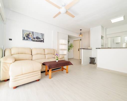 Amazing apartment in La Recoleta, Punta Prima Do not miss the opportunity to live in one of the most privileged residential areas of Punta Prima. This apartment located on the ground floor, has a spacious living room with open kitchen and gallery. It is distributed in two bedrooms, one of them with en-suite bathroom. Besides, it has a toilet and another single room. Thanks to its south orientation, it has views of the residential that can be enjoyed from the terrace of 14m2. In addition, it has storage room and private garage. Punta Prima is an urbanization at the foot of the sea, where you can enjoy water sports, leisure and beaches. It is close to all services such as the Zenia Boulevard Shopping Center and sports centers. Walking distance to Cala Piteras, Punta Prima Beach and Playa Flamenca as well as the rest of the blue flag beaches of Orihuela Costa and Torrevieja. It borders the urbanization of Rocío del mar. A few minutes from the golf courses Las Colinas, Campoamor, Las Ramblas and Villamartin. Good communication with the Mediterranean motorway AP-7 and N-332.