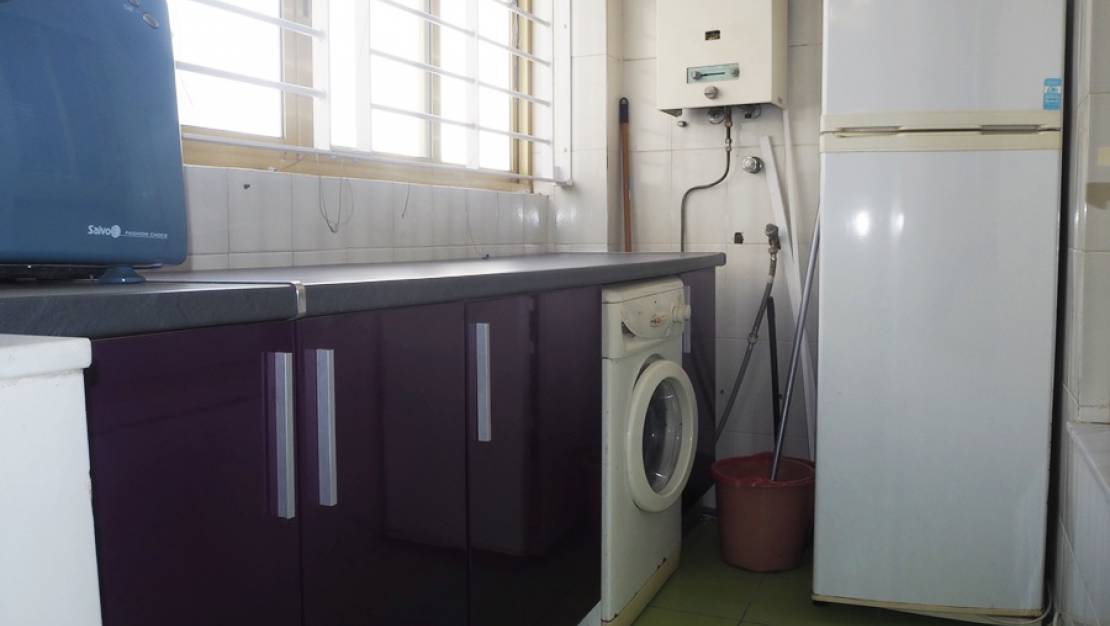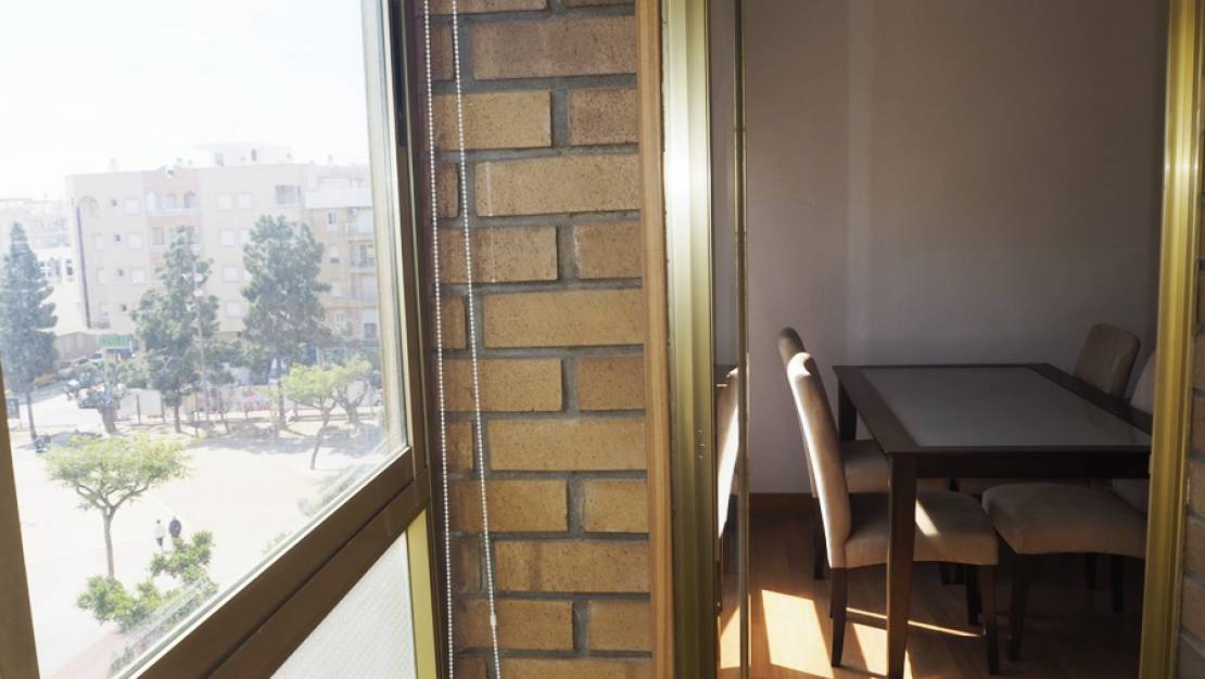 Penthouse on 4th Floor consists of 3 bedrooms with fitted wardrobes and 2 bathrooms, one of them en suite, a spacious living room with unobstructed views of the park and a glazed 8 m2 terrace. The modern kitchen, with plenty of space and large storage capacity and access to a large furnished gallery. The building consists of 2 homes per floor, a luxury, with hardly any neighbors. A spacious apartment of 107 m2 whose distribution takes advantage of the entrance of light in all its rooms oriented to the Southeast and with parquet floors that still make it warmer if possible. The house is delivered with air conditioning in living room and furnished. Excellent location, in the center, close to shops, pharmacy, buses ... all the services you may need at a step and just 5 minutes walk to the beach, with fine sand and crystal clear waters with blue flag. Nearby is also the Reina Sofía Park, a natural space with fountains, lakes and lots of trees. Ideal home for both year-round living and vacations. Good access to the national and other surrounding villages, 25 minutes from Alicante airport and about 8 km from the nearest golf course.