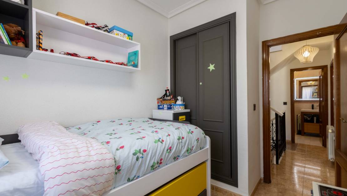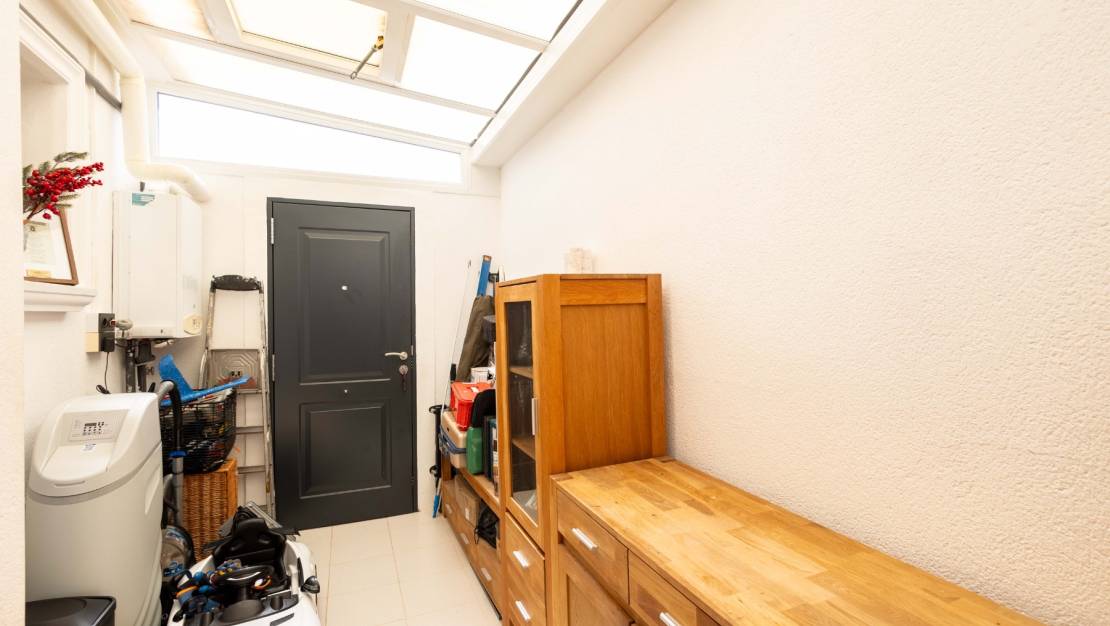 This house is ideally located in Villamartin, just 5 km from the sea and close to the Villa Martín golf course. It is sold fully furnished and equipped with all necessary appliances. It is part of a residential complex with a communal swimming pool.