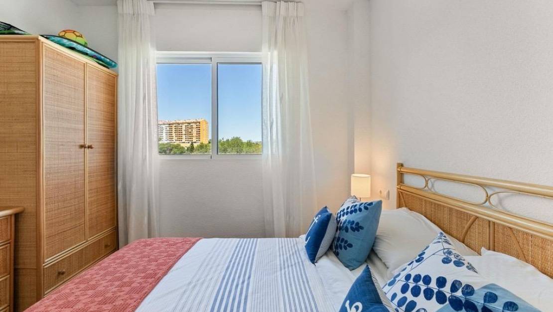 Apartment located in one of the most beautiful areas of Orihuela Costa, Dehesa de Campoamor, just 300 meters from Campoamor Beach. Located on the fourth floor, southeast-facing. With a surface area of 76 m2, it consists of 2 spacious bedrooms and 1 full bathroom. Bright living room with access to the terrace, with relaxing views of the green areas and the communal pool. Sold furnished, the kitchen is equipped (kitchen with utility room). Includes an outdoor parking space within the residential complex. Large communal areas with swimming pools, tennis courts, a children's play area, and more. Just a few meters from the supermarket, restaurants, the seafront promenade, the marina, and more.