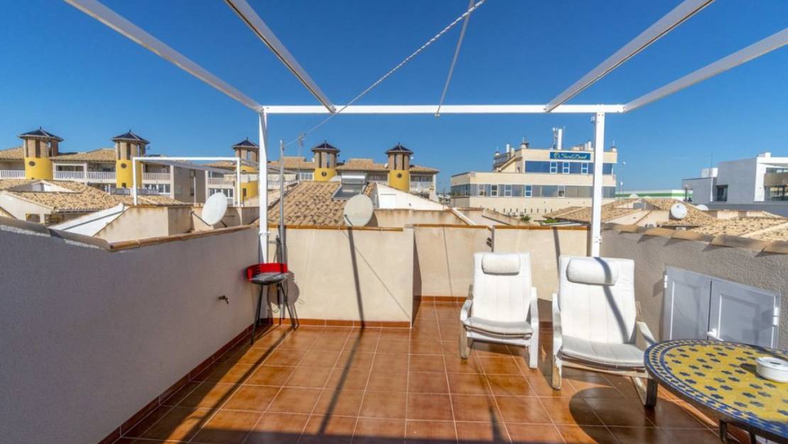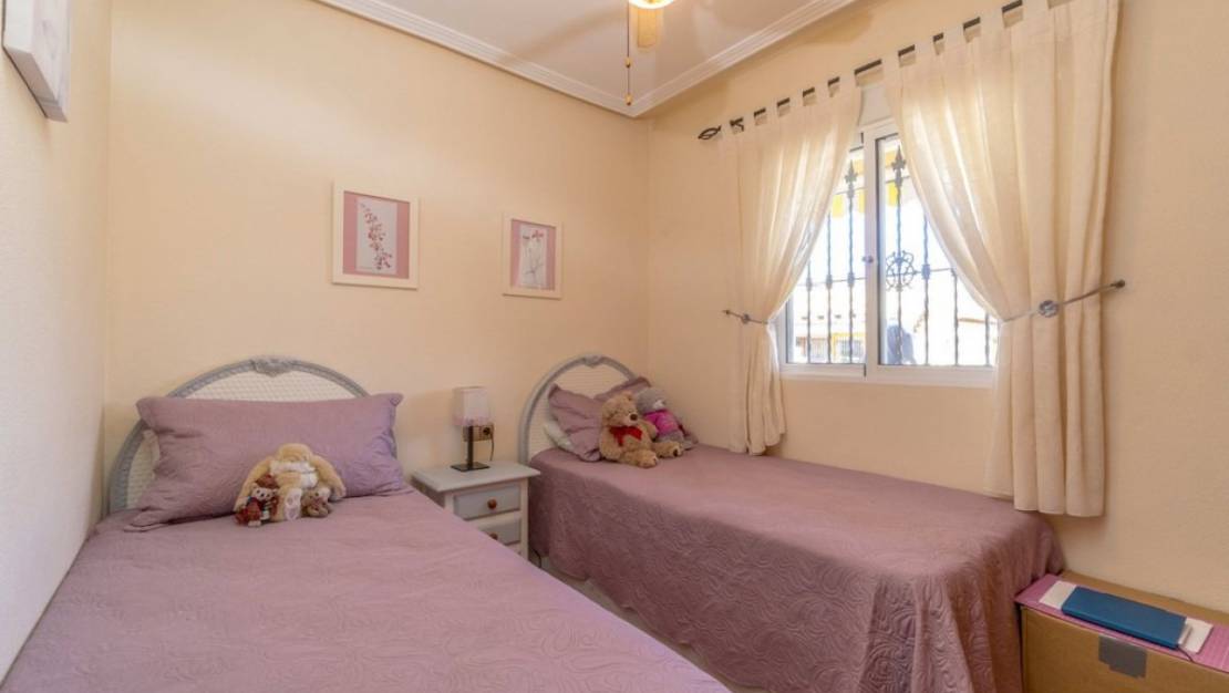 Cozy semi-detached house on one floor, with beautiful garden, good neighborhood, residential area in gated community, quiet and just a few minutes from the well-known shopping center Zenia Boulevard, is located a few minutes drive from 3 golf courses and beaches like La Zenia, Cabo Roig.