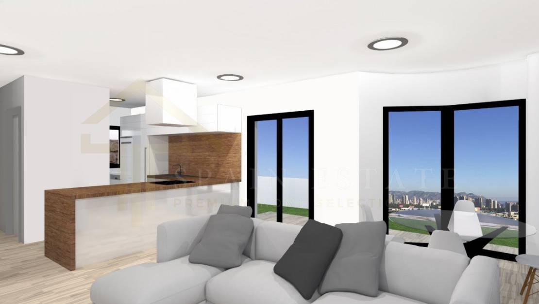 New Build Terraced House in Cala Finestrat - Benidorm composed of 127 m. of area, terrace of 12 m2, a double room and a single room, 2 bathrooms and equipped kitchen.