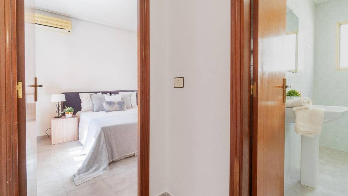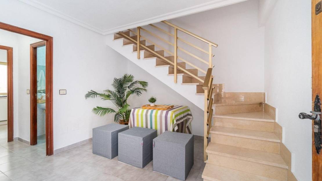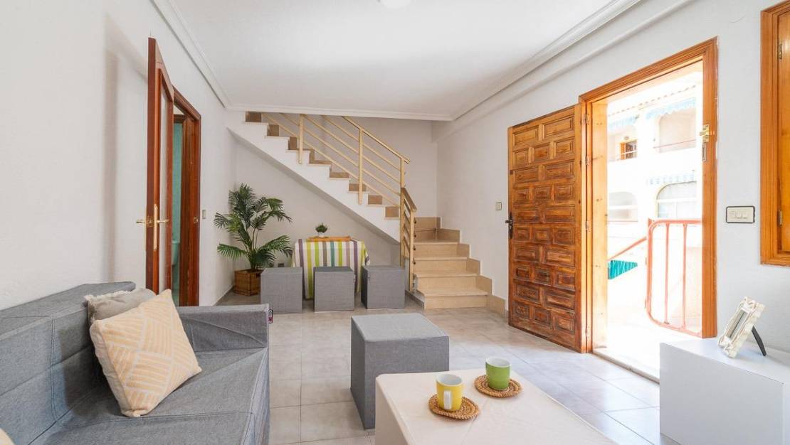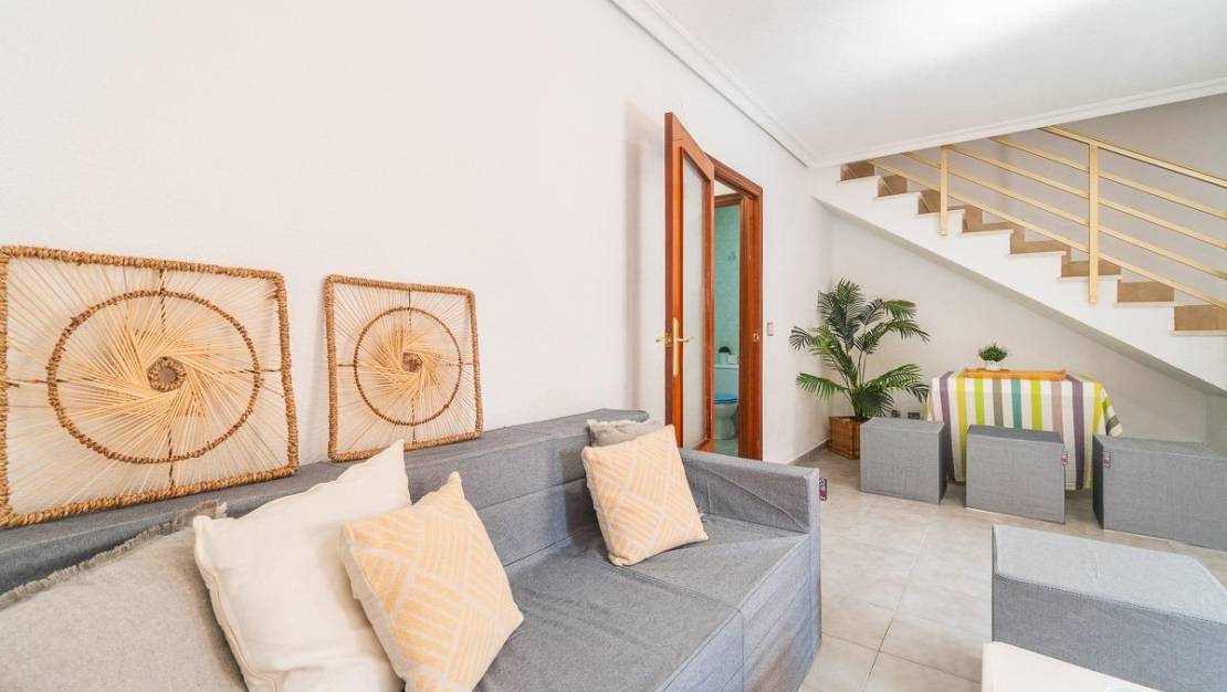 Discover this charming bungalow located in the sought-after area of El Acequión - Los Náufragos, just 150 meters from the sea. With a built surface of 97 m² and an east-facing orientation, this property is ready to move into, ideal both for families and for those looking for a second home on the coast. Upon entering the house, you are greeted by a spacious balcony that leads directly into the living room, a cozy and bright space perfect for family moments. From the living room, you access the independent kitchen, fully equipped and functional, which also has an adjoining laundry area for extra convenience. On this same floor, there is also a spacious and practical bedroom as well as a complete bathroom serving the daytime area.. . Going upstairs, you will find the sleeping area with a full bathroom and two double bedrooms, both with direct access to another balcony that brings in natural light and provides a private outdoor space. The surroundings are unbeatable: the house is framed by tree-lined areas that offer a pleasant natural atmosphere, with easy access to buses, schools, shopping centers and nearby hospitals. For children, there are safe playgrounds where they can enjoy freely.. . A unique opportunity to enjoy a cozy and well-located home in one of the most attractive corners of Torrevieja, ready to move into and enjoy from the very first day.