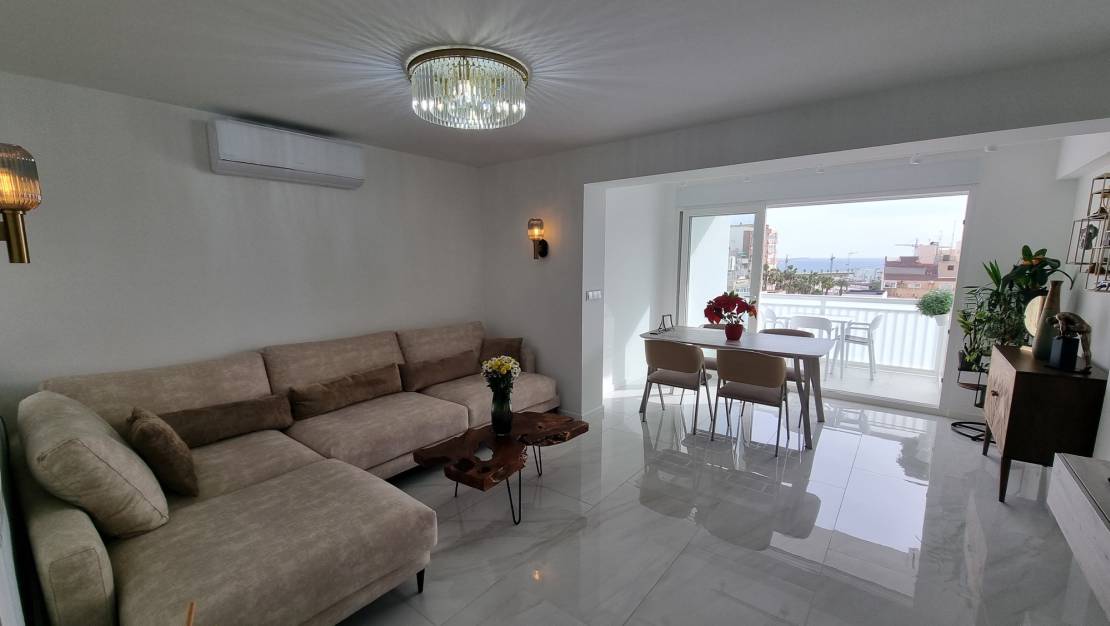 It consists of 2 bedrooms, 2 bathrooms, a spacious living room with an open-plan kitchen and a terrace with stunning views of the sea, the new business center and the townhouse.