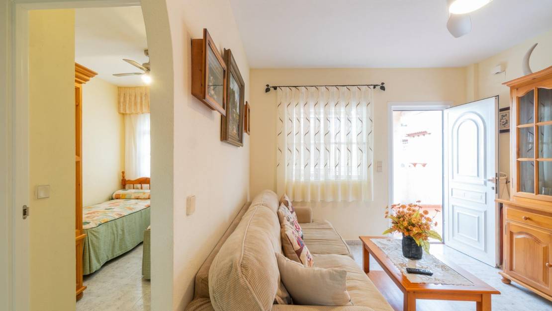 Live in the Duque de Ahumada residential complex, one of the most sought-after in Playa Flamenca, located on Niágara Street and opposite the Municipal Sports Centre. This first-floor apartment offers plenty of light, space and completely open views with no buildings in front.. . The property has a built area of 53 m2 distributed over two double bedrooms, one full bathroom, and a bright living-dining room with direct access to a large private 25 m2 terrace, perfect for enjoying the sun all year round. The independent kitchen is fully equipped and ready to move into.. . On the upper floor there is a private 21 m2 solarium, ideal for relaxing, sunbathing or spending time with family and friends. In addition, there is a small extra room that can be used as a storage space or as an occasional guest bedroom.. . The apartment is sold fully furnished and equipped, within a gated community featuring a communal swimming pool and a private parking space. The area is quiet and well connected, with all amenities close at hand: supermarkets, schools, restaurants and sports facilities.. . Just 1.5 km from the beach, very close to the Saturday street market and a lively area with bars and leisure venues, this property allows you to enjoy the Mediterranean lifestyle all year round.. . Economic conditions:. . Monthly rent: €790. . Deposit: 1 month. . Additional guarantee: 1 month. . Water and electricity expenses paid by the tenant. . Financial study required. . Available for immediate move-in. . Pets allowed