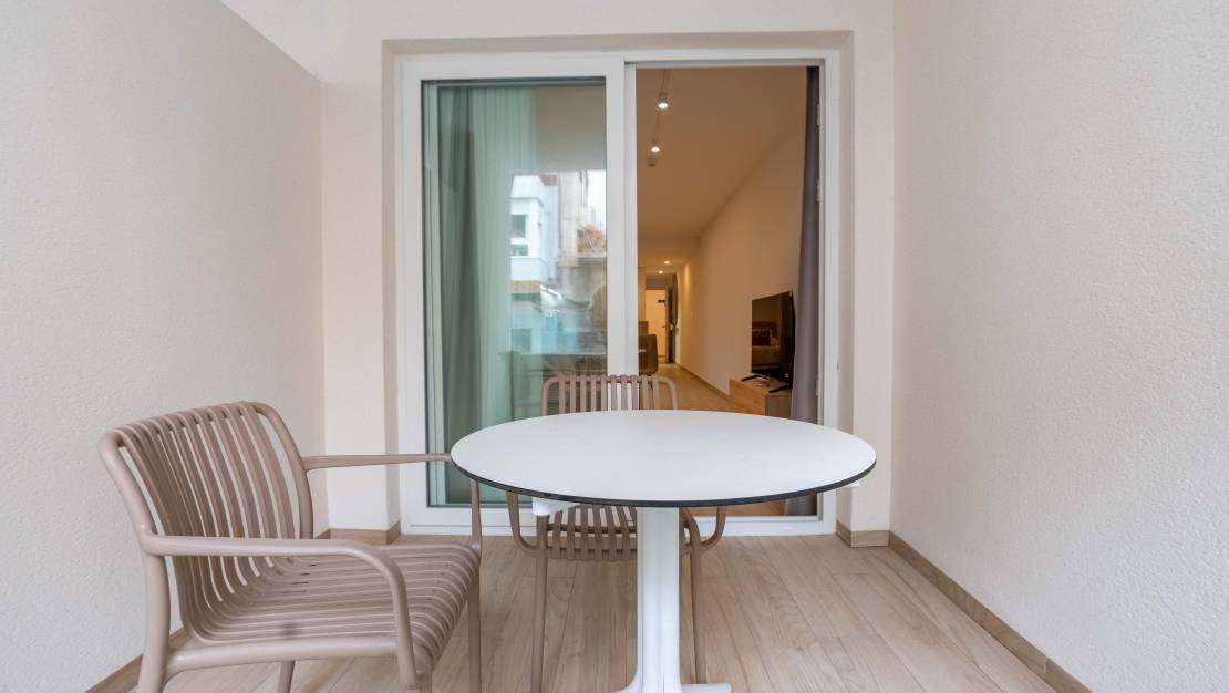 This 52 m² apartment has a spacious entrance hall, an open kitchen, a bright and airy living room with large windows, a large bedroom with built-in wardrobes and a bathroom with shower. It is fully furnished and has air conditioning (in the living room and bedroom). The double-glazed aluminum windows provide excellent thermal and sound insulation.