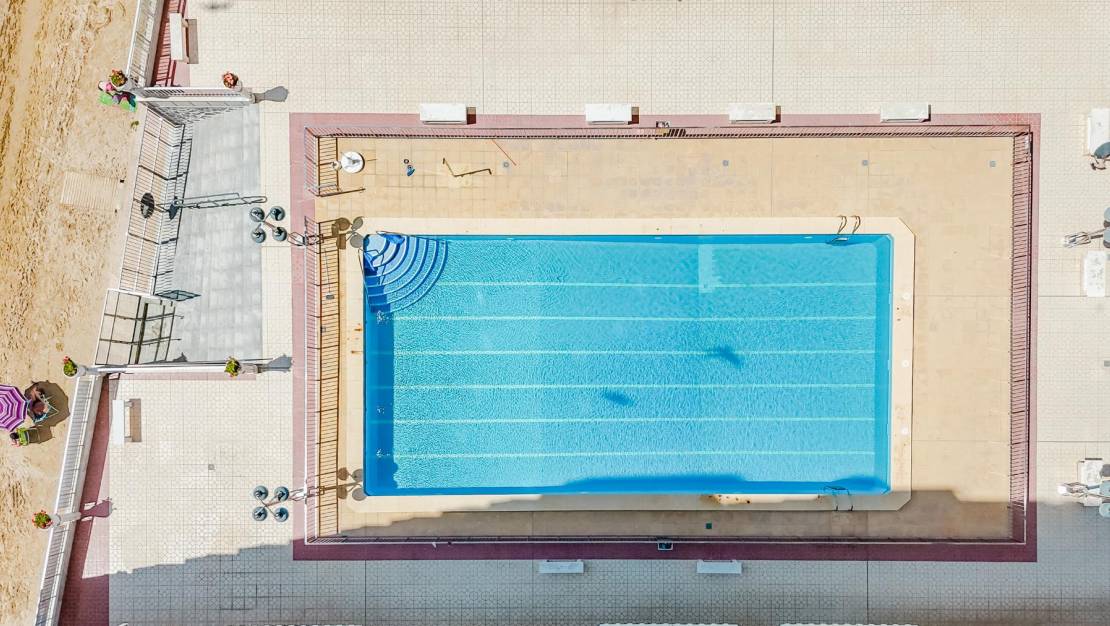 The residential complex offers direct beach access and a communal swimming pool, adding further value for both lifestyle buyers and investors targeting the holiday rental market in Torrevieja.