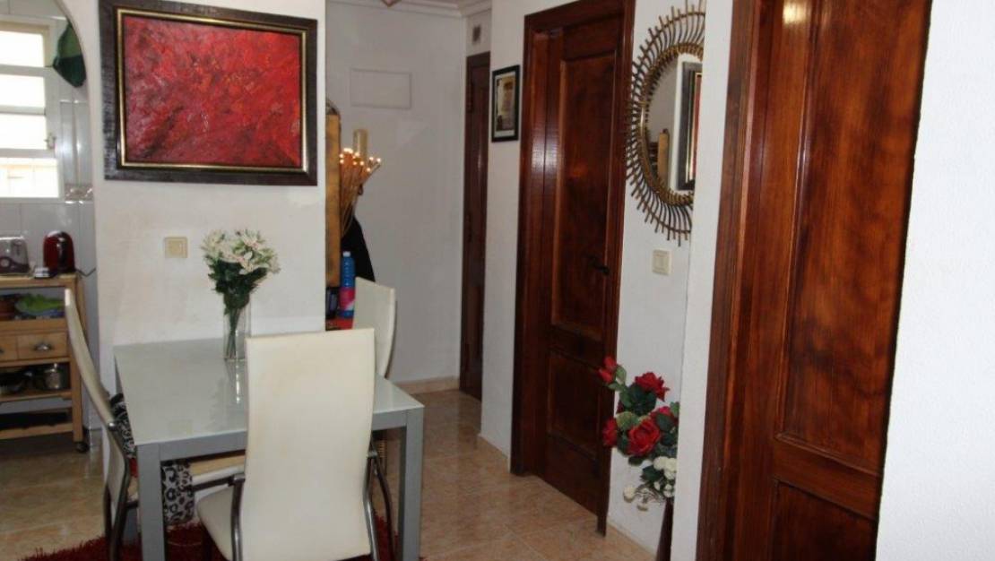 Bright and nice apartment in Torrevieja.The apartment contains a small hallway, an open kitchen, a spacious living room, a spacious bedroom with a brand new sliding door wardrobe with three doors. You have a large terrace with orientation southwest. The terrace also has two storerooms for storage.You have the Consum grocery store just 8 meters from the door. There are also a number of eateries, bars and shops in the immediate vicinity. The same applies to pharmacies and any services you may need. It takes 15 min to walk down to the beaches of Playa del Cura or Playa de los Locos. Down there, the seafront starts, which runs all the way along the sea and into the center of Torrevieja. A walk to Torrevieja takes about 30 minutes.