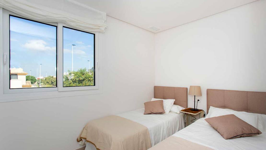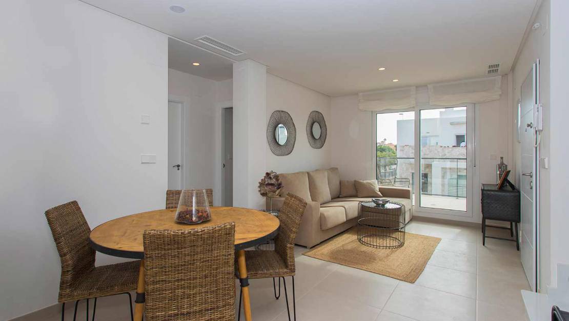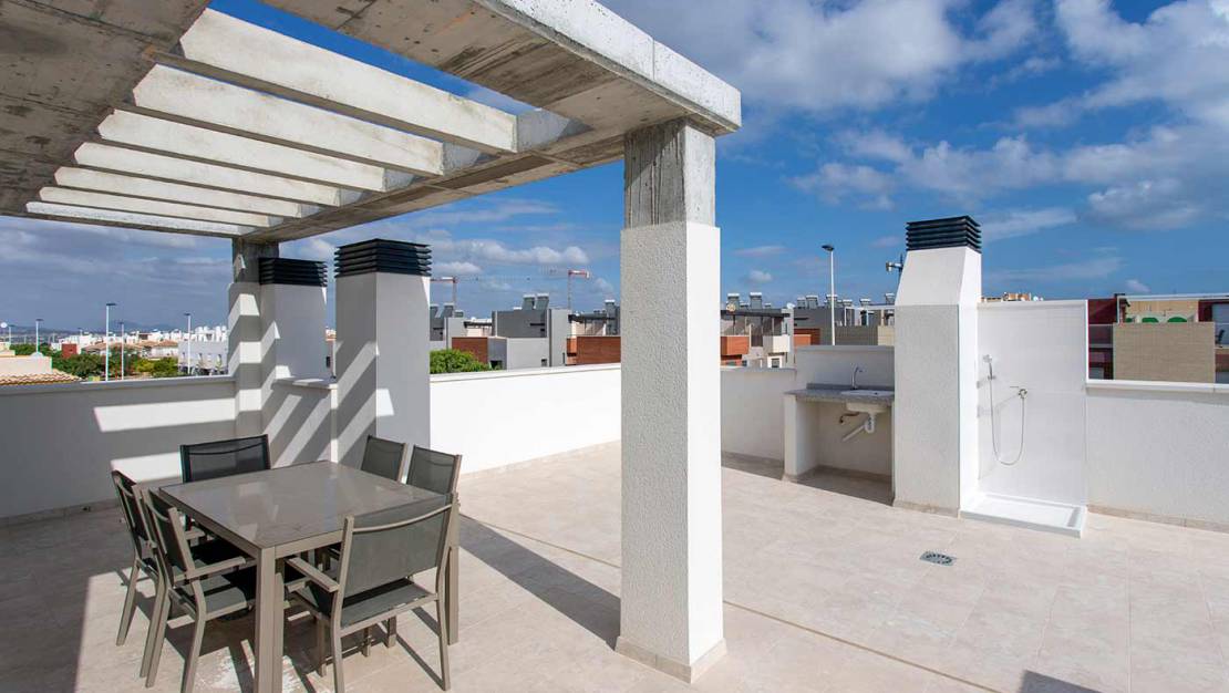 Это эксклюзивный закрытый комплекс апартаментов с 2 и 3 спальнями, квартира на первом этаже с садом и квартира на верхнем этаже с отдельным солярием. Он находится всего в двух минутах езды от пляжа Ла Мата, одного из лучших пляжей на побережье Коста Бланка.