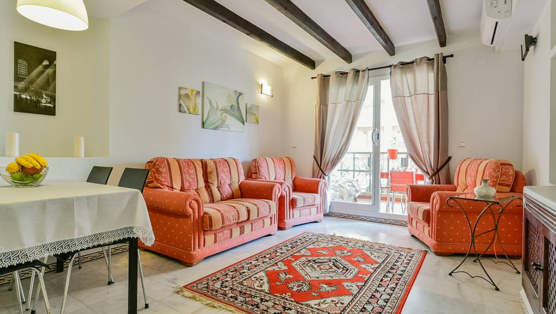 Квартира имеет застроенную площадь 84 кв.м., распределенную в гостиной, меблированную и оборудованную кухню с техникой, 2 спальни с двуспальными кроватями, 2 ванные комнаты и красивую террасу.