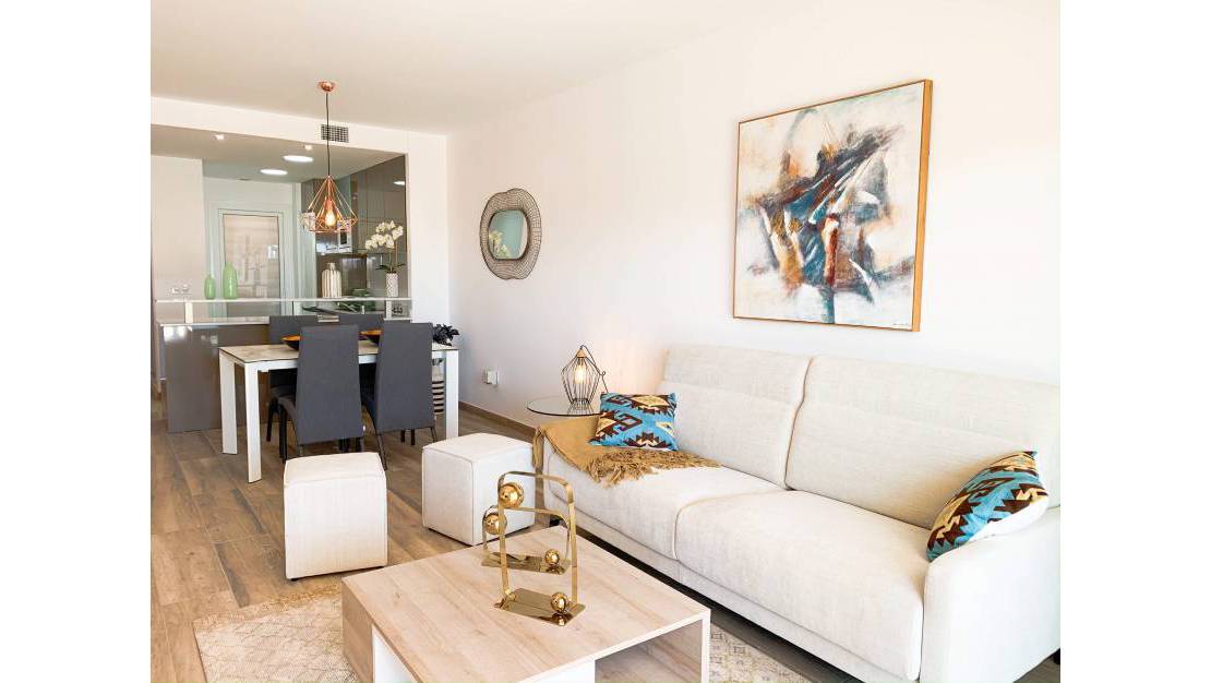 Район с развитой инфраструктурой, особенно любимый европейцами. Он расположен на расстоянии 3 км от береговой линии. За несколько минут на машине можно добраться до пляжа, а также до гольф-клубов Кампоамор и Лас-Рамблас. Этот район идеально подходит для проживания круглый год. Поблизости находится Зения-Бульвар – самый большой торговый центр провинции Аликанте. Район имеет хорошее транспортное сообщение. С большими городами связь либо по национальной дороге N-332, либо по скоростной трассе АР-7. Побережье Коста-Бланка с его уникальным микроклиматом считается одним из мест с самым высоким качеством жизни в Европе. Средняя температура воздуха составляет 18 градусов, а солнце здесь светит более 300 дней в году. Неподалеку находятся города Торревьеха, населенные пункты Ла-Зения, Кабо-Роиг, Миль-Пальмерас, Кампоамор. Песчаные пляжи и бухты протянулись на 16 км.rnrnСалон, американская кухня, 2 спальни, 2 ванные комнаты, одна из которых ан-сюит, из салона выход на террасу площадью 18 м2. Окна обращены на юг, 3 этаж (по-русски 4), солярий 49 м2. Общая площадь 150 м2. Закрытый комплекс: общий бассейн, детская площадка, открытый паркинг.
