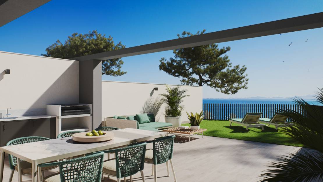 Недавно построенная урбанизация, состоящая из квартир на первом этаже с садом или на верхнем этаже с большим солярием, с фантастическим видом и прямым доступом к пляжу, в Сантьяго-де-ла-Рибера.