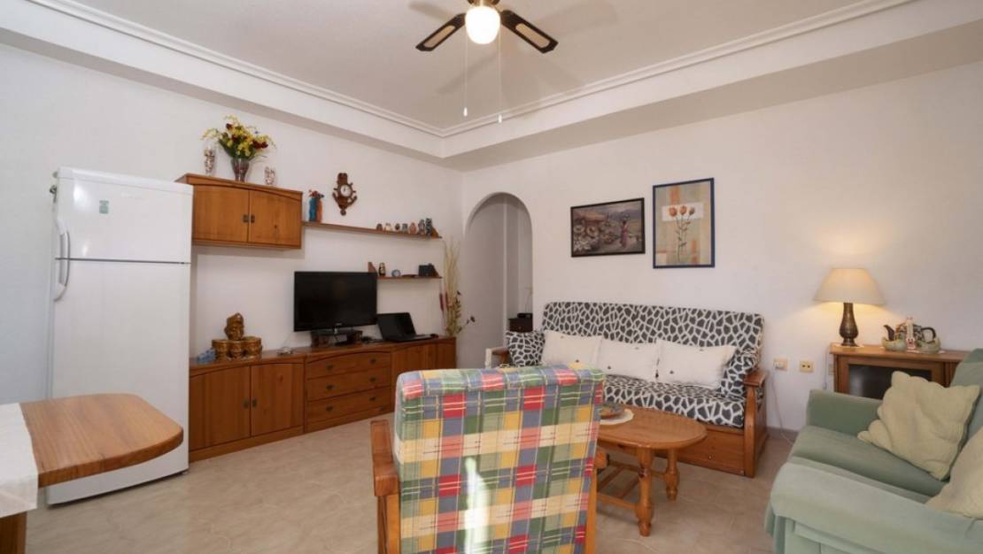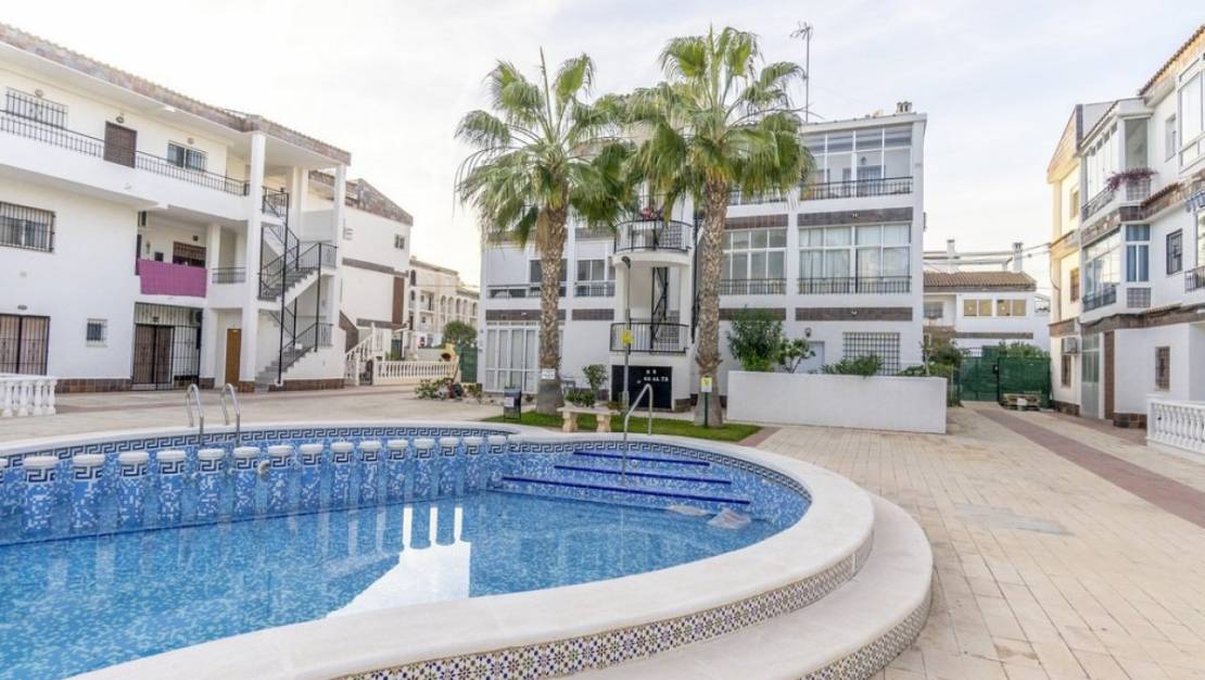 Бунгало на первом этаже на южной стороне в отличном состоянии, расположенное в Пунта Прима, всего в 10 минутах ходьбы от пляжа. Состоит из 1 большой спальни, 1 ванной комнаты, гостиной и кухни. В доме есть большая терраса 25м2 с видом на юг. С другой стороны, он имеет прямой доступ к бассейну. Закрытое сообщество с сообществом пула. Рядом с зоной обслуживания и около 400 метров от песчаного пляжа.