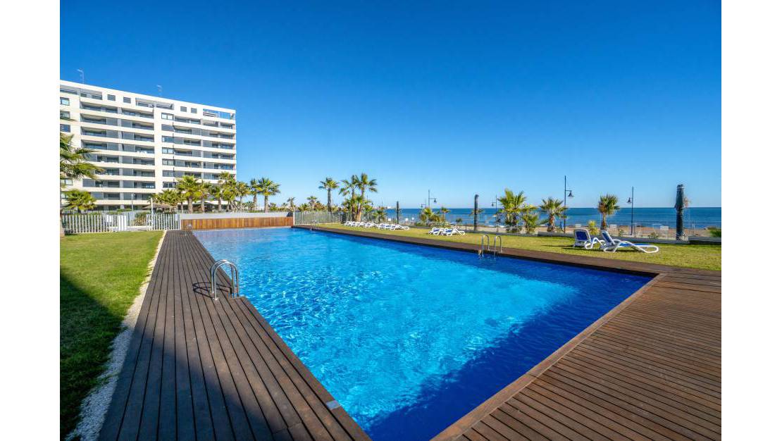 Lägenhet belägen i exklusivt komplex Panorama Mar i Punta Prima, Torrevieja. Bostaden består av rymliga gemensamma ytor, 3 gemensam pool (1 infinity och 1 för barn), lekplats för barn, underjordisk parkering, förråd och 24hs privat säkerhet.