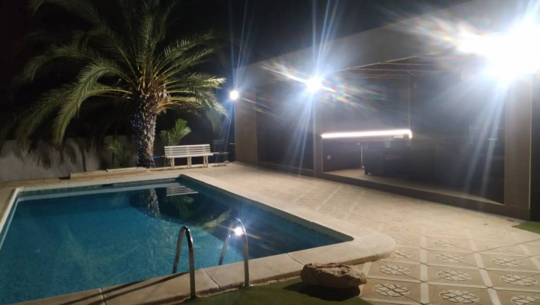 Vacker oberoende villa, belägen på Avenida de España, nr 50 i Pilar de la Horadada. Huset har 3 sovrum, 6 sovplatser, 3 badrum, amerikanskt kök med bar, vardags- / matrum, luftkonditionering, smart-tv, wifi, 1000m2 trädgård med pingisbord, 8 x 4 privat pool, poolhus, stor terrass, grill, parkeringsgarage för 2 bilar.