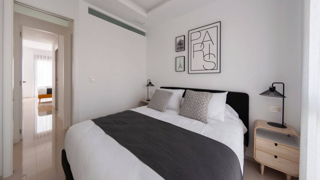 Bostaden är uppdelad i 3 våningar och 32 bostäder. Du når terrassen från vardagsrummet där du kan njuta av underbar utsikt över havet. Detta bostadsområde har en gemensam pool, samt underjordisk parkering och ett gemensamt gym.