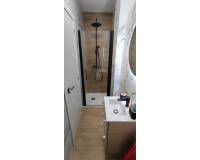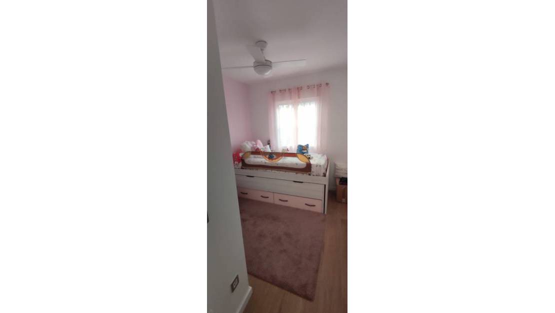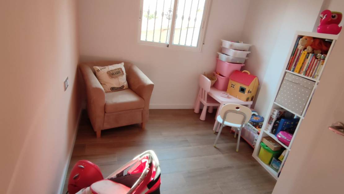 Detta hus ligger på första våningen i en byggnad i ett inhägnat område med grönområden och en gemensam pool.