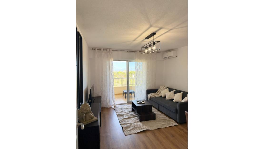 I ett lugnt område i Punta Prima hyrs en bekväm lägenhet på 75 m² ut på fjärde våningen i en helt öppen byggnad.