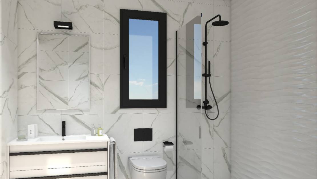 Vår nybyggda bungalow med solarium till salu i Finestrat har goda förbindelser med platser att ha kul eller koppla av.